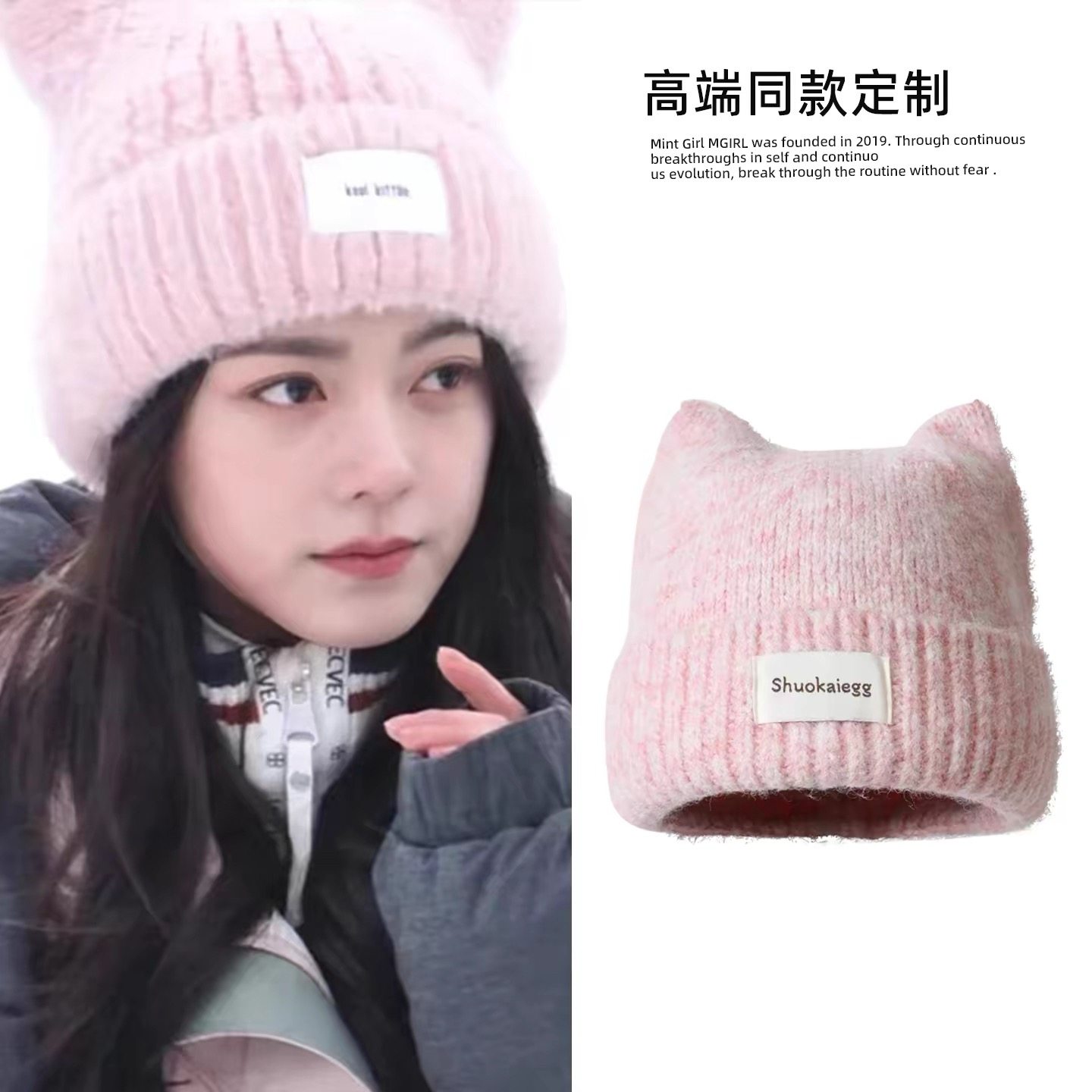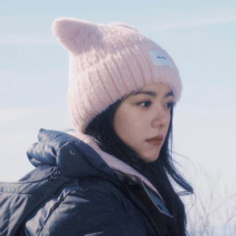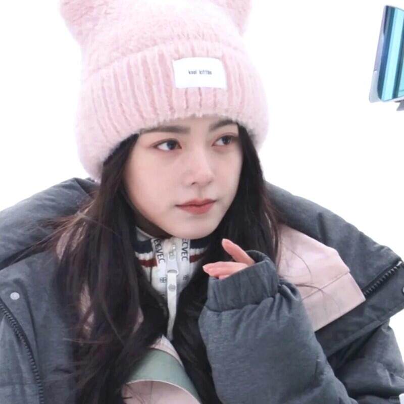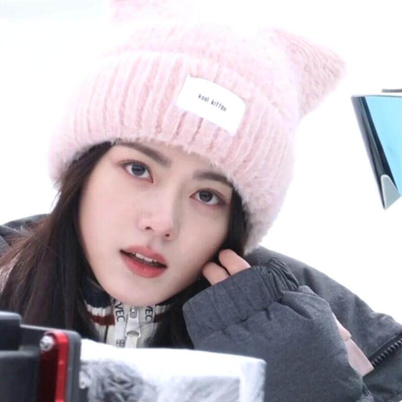 📚 骄阳似我赵今麦聂曦光同款粉色猫耳朵帽子可爱软糯保暖针织毛线帽