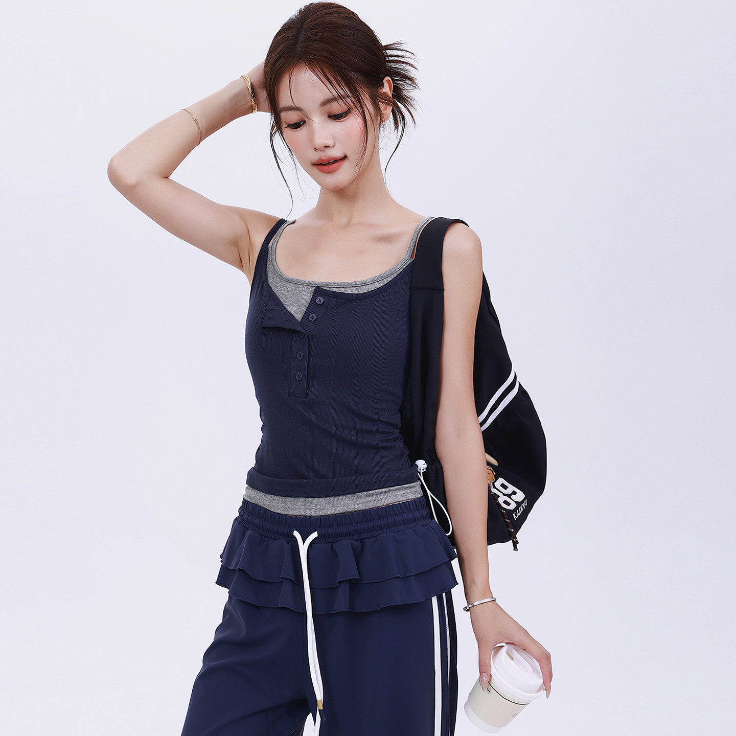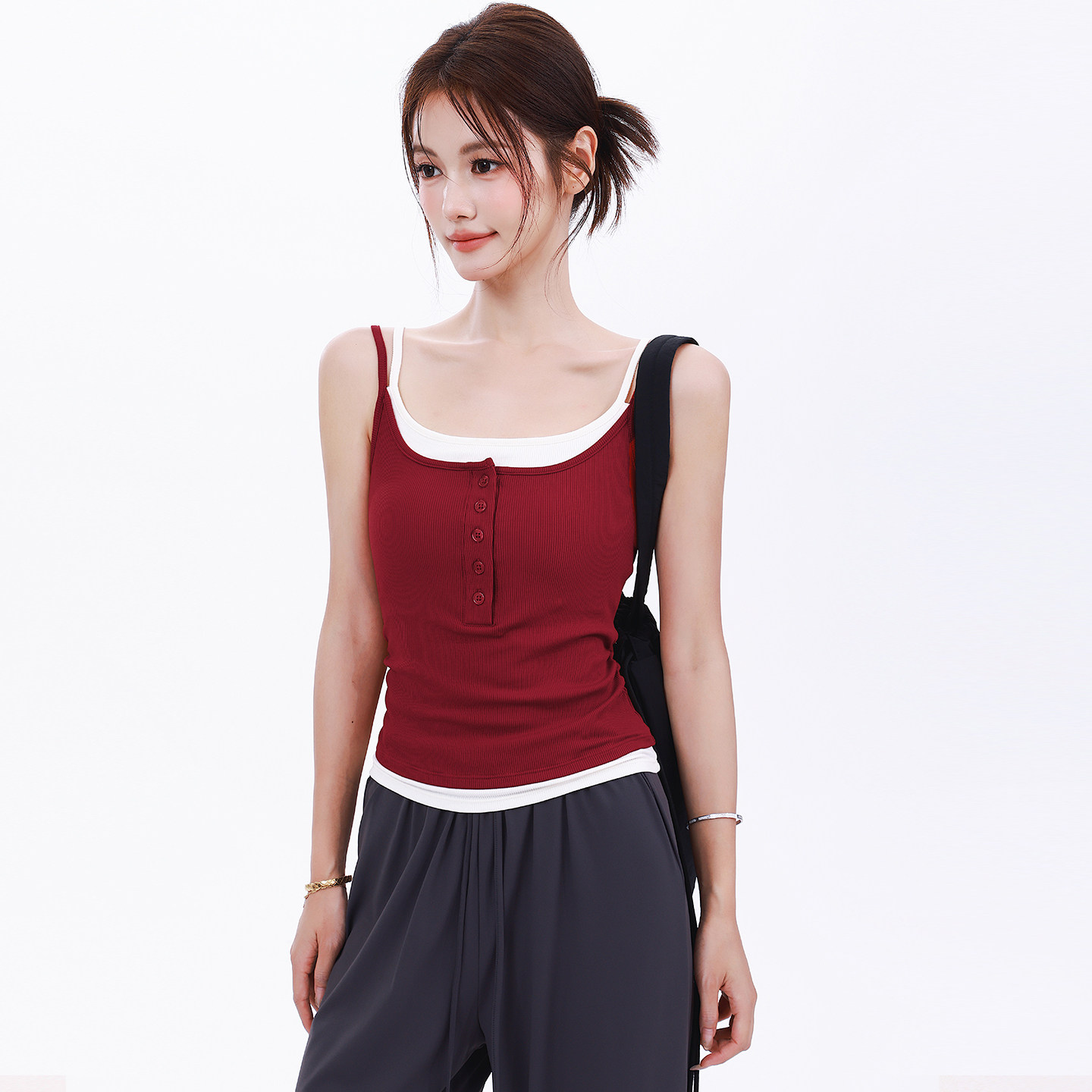 📚 奔跑吧卡卡一体杯拼色运动背心女百搭瑜伽普拉提纽扣显瘦健身内衣