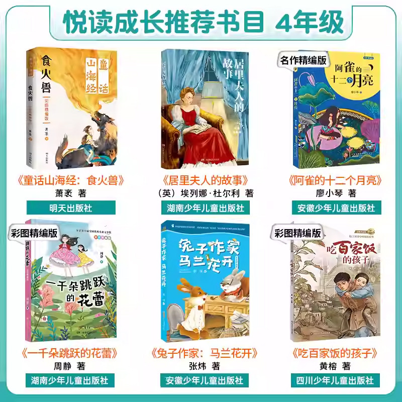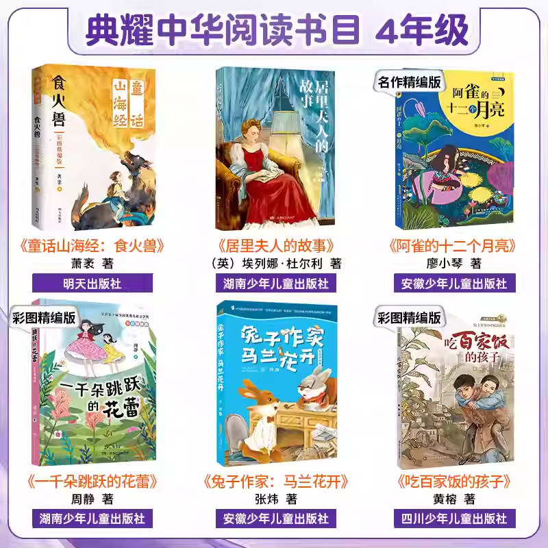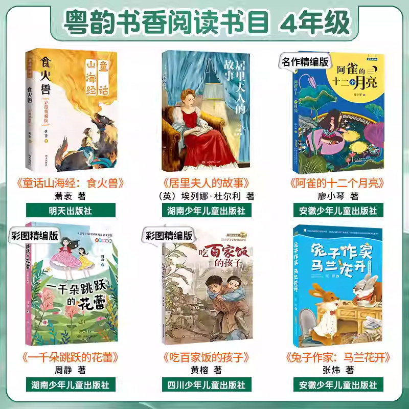 📚 河南典耀中华广西山东悦读成长广东粤韵书香四年级童话山海经食火兽居里夫人的故事阿雀十二个月亮一千朵跳跃花蕾兔子作家马兰花开