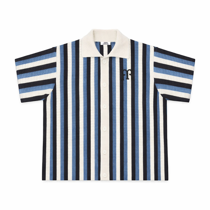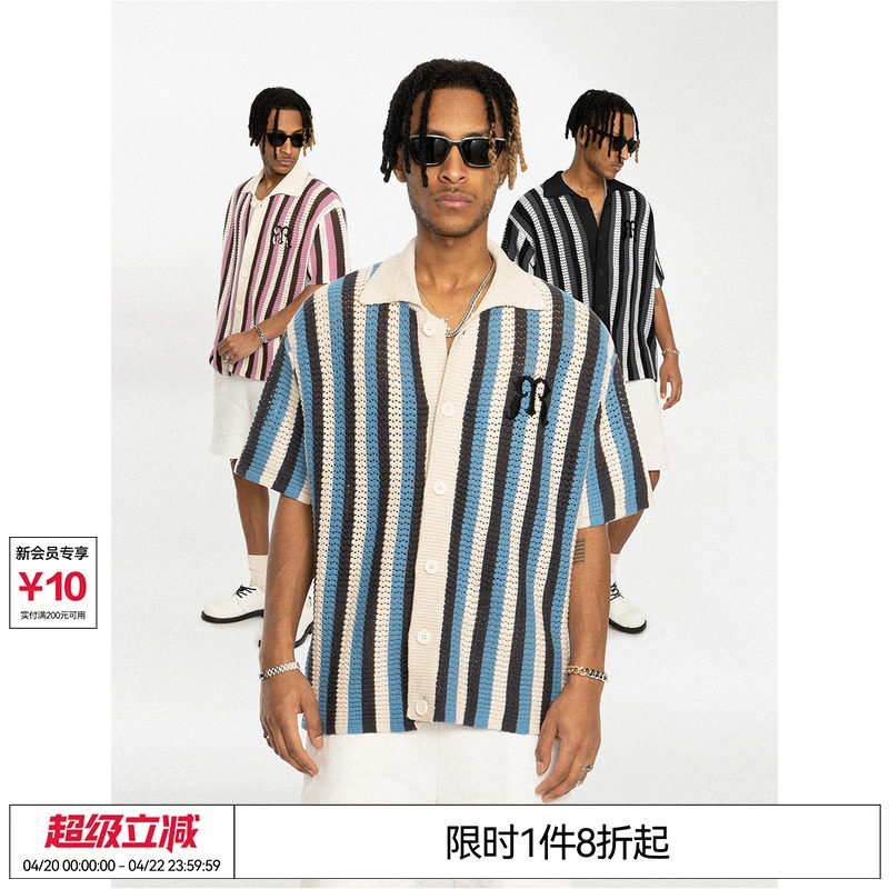 📚 武艺于洋张颜齐EMPTYREFERENCE编织条纹刺绣拼色衬衣方领短袖衬衫