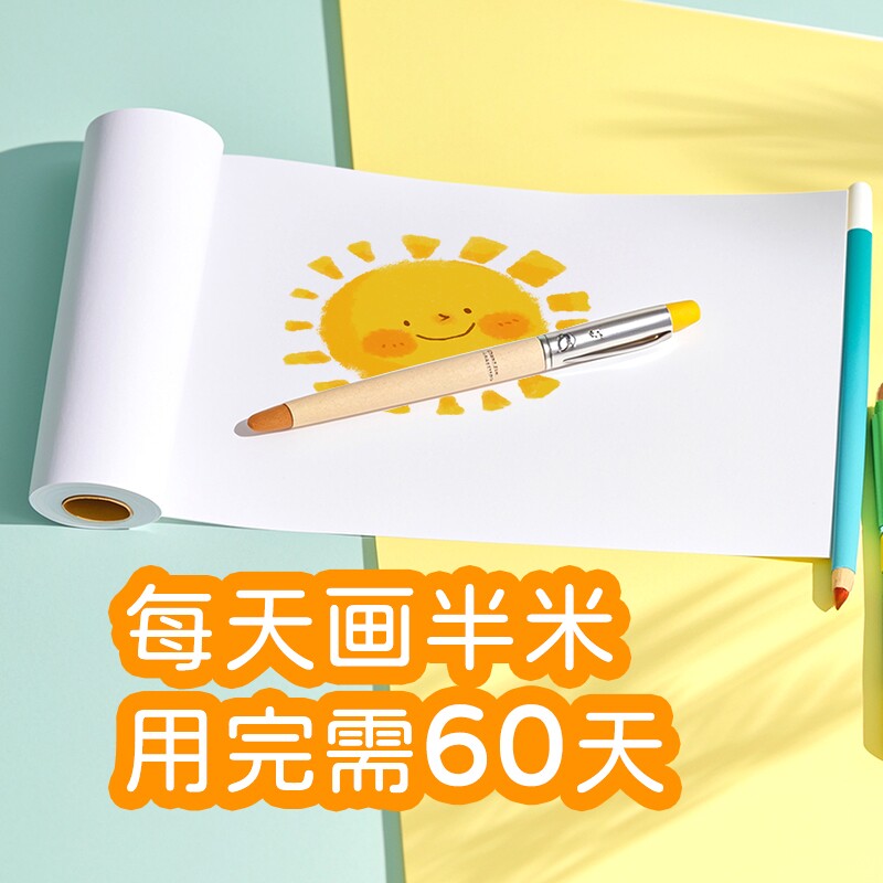 📚 儿童绘画卷纸涂鸦大卷长画纸儿童长卷纸带实木素描卷纸架画画水彩涂色纸10米30团建巨幅海报超长涂色不脏墙