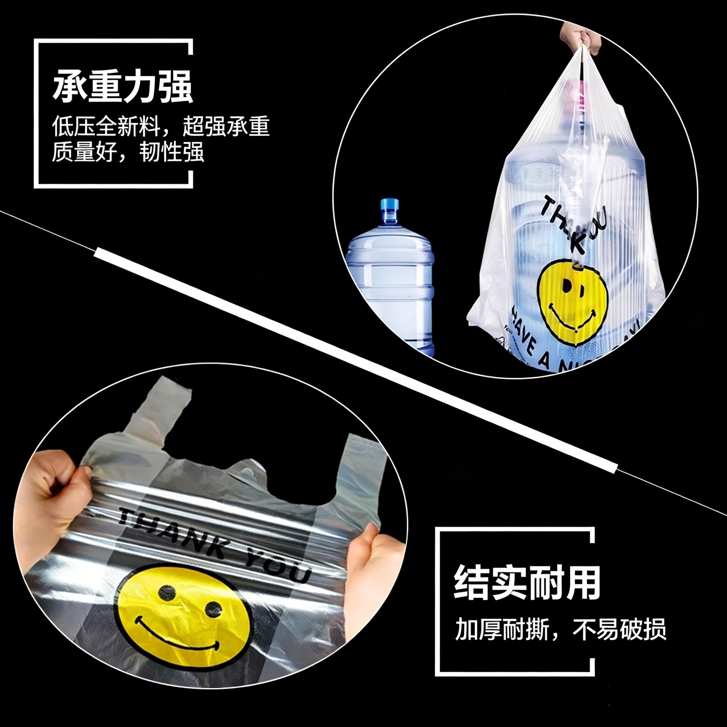 📚 笑脸塑料袋方便袋超市购物袋食品级手提背心式外卖打包袋子胶袋