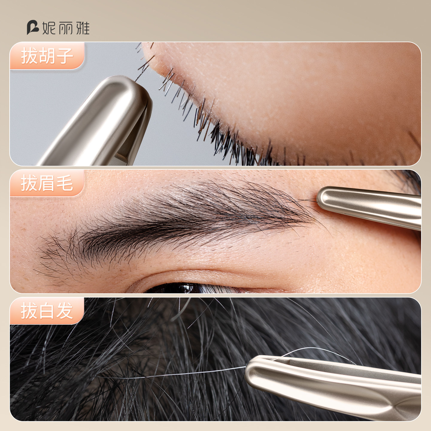 📚 妮丽雅高精密胡须夹小镊子男士眉夹拔毛钳不锈钢夹胡须拔胡子工具