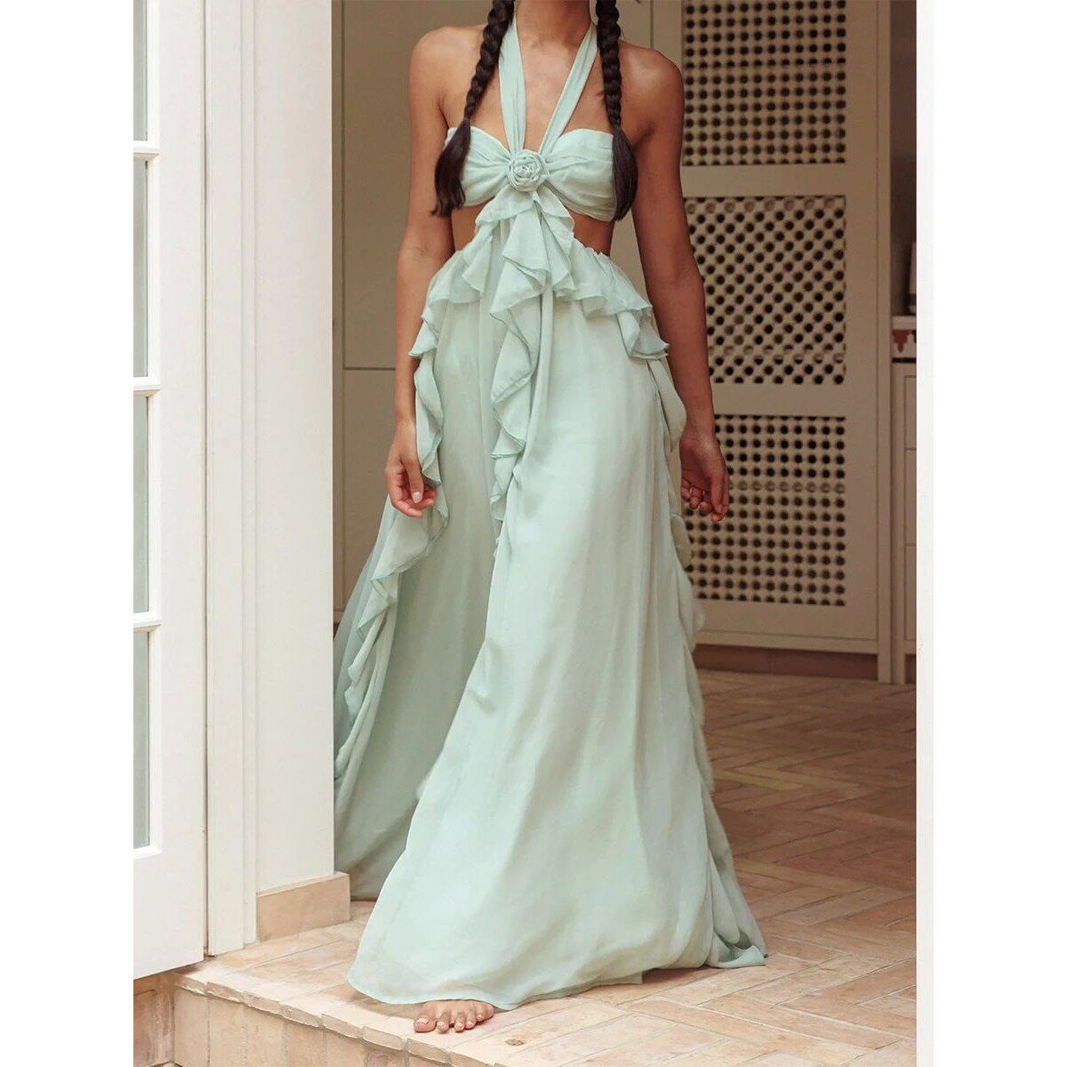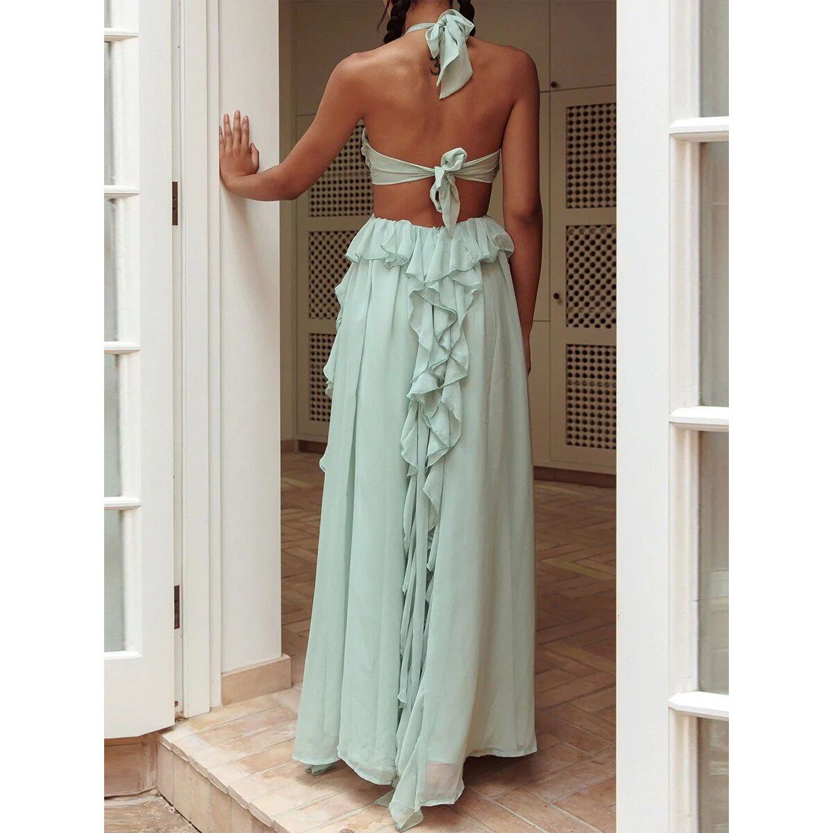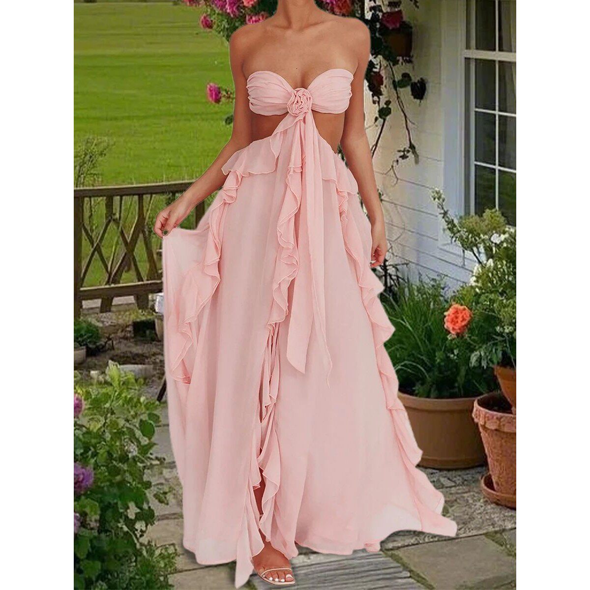 📚 抹胸荷叶边露背度假长裙Strapless lotus leaf side length dress