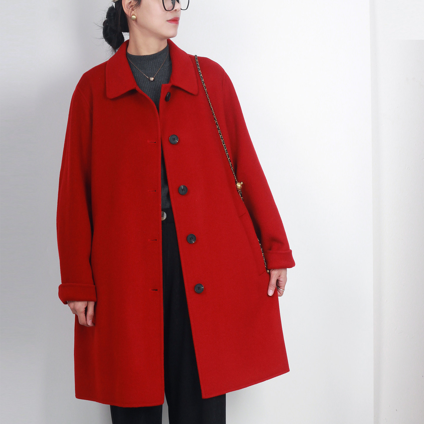 📚 显瘦双面羊毛大衣女装2025秋冬大码胖MM新款妈妈装200斤加肥加大