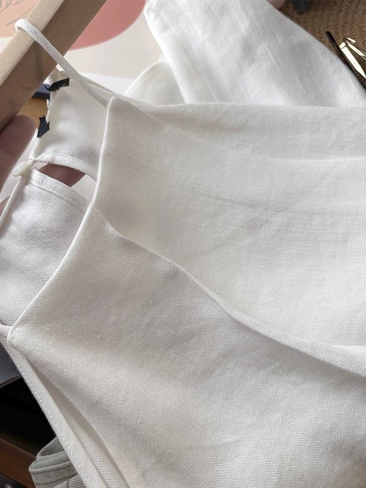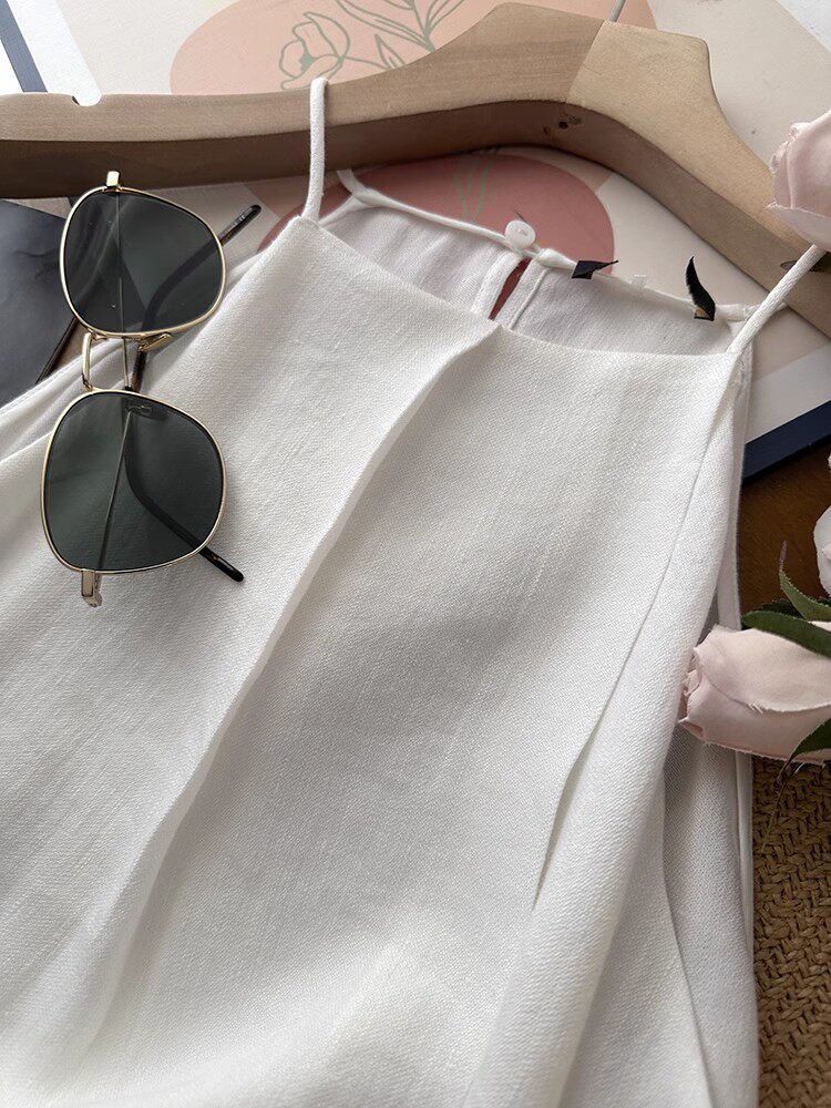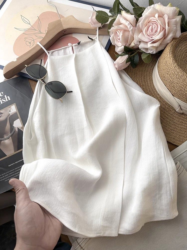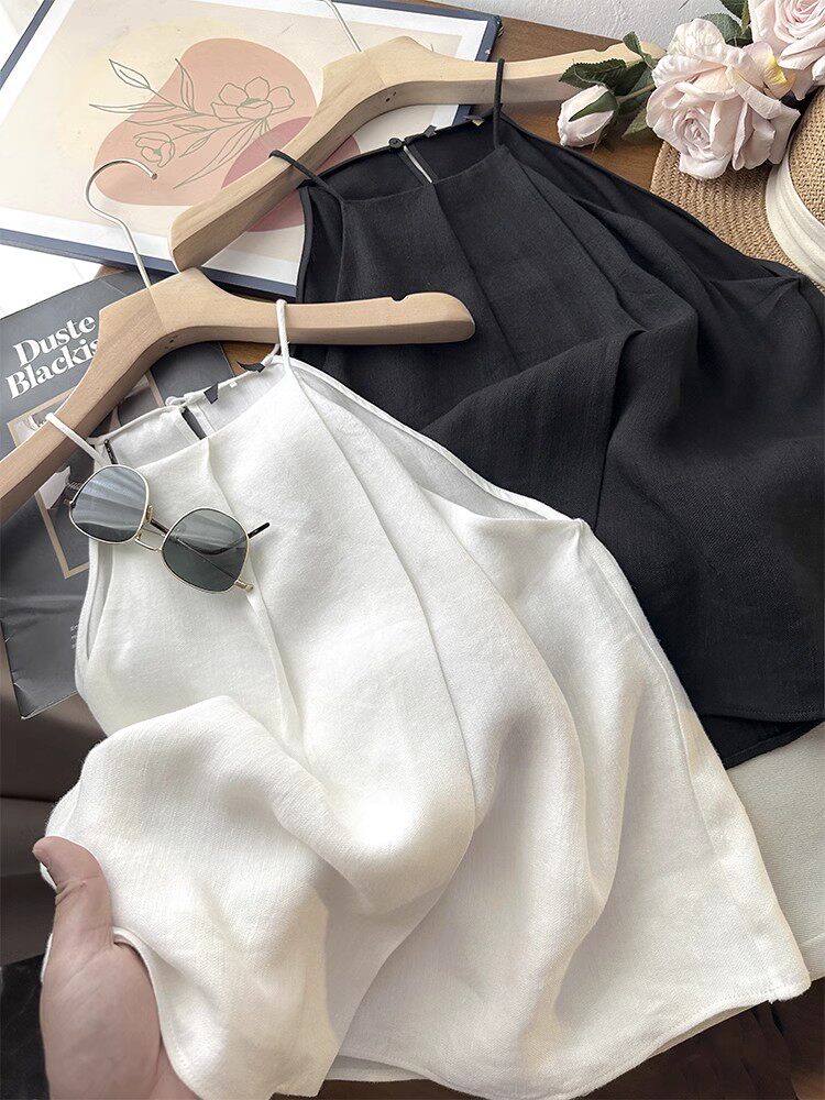 📚 西班牙单~M系の木巨490!法式优雅极简亚麻混纺无袖吊带衬衫女夏