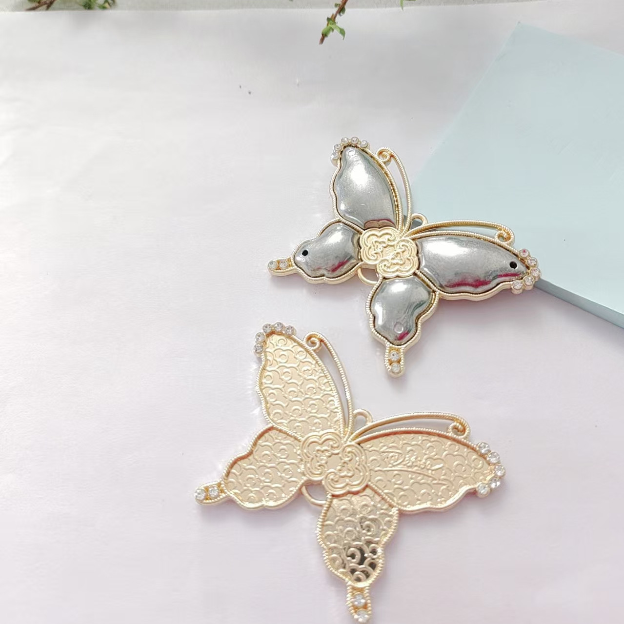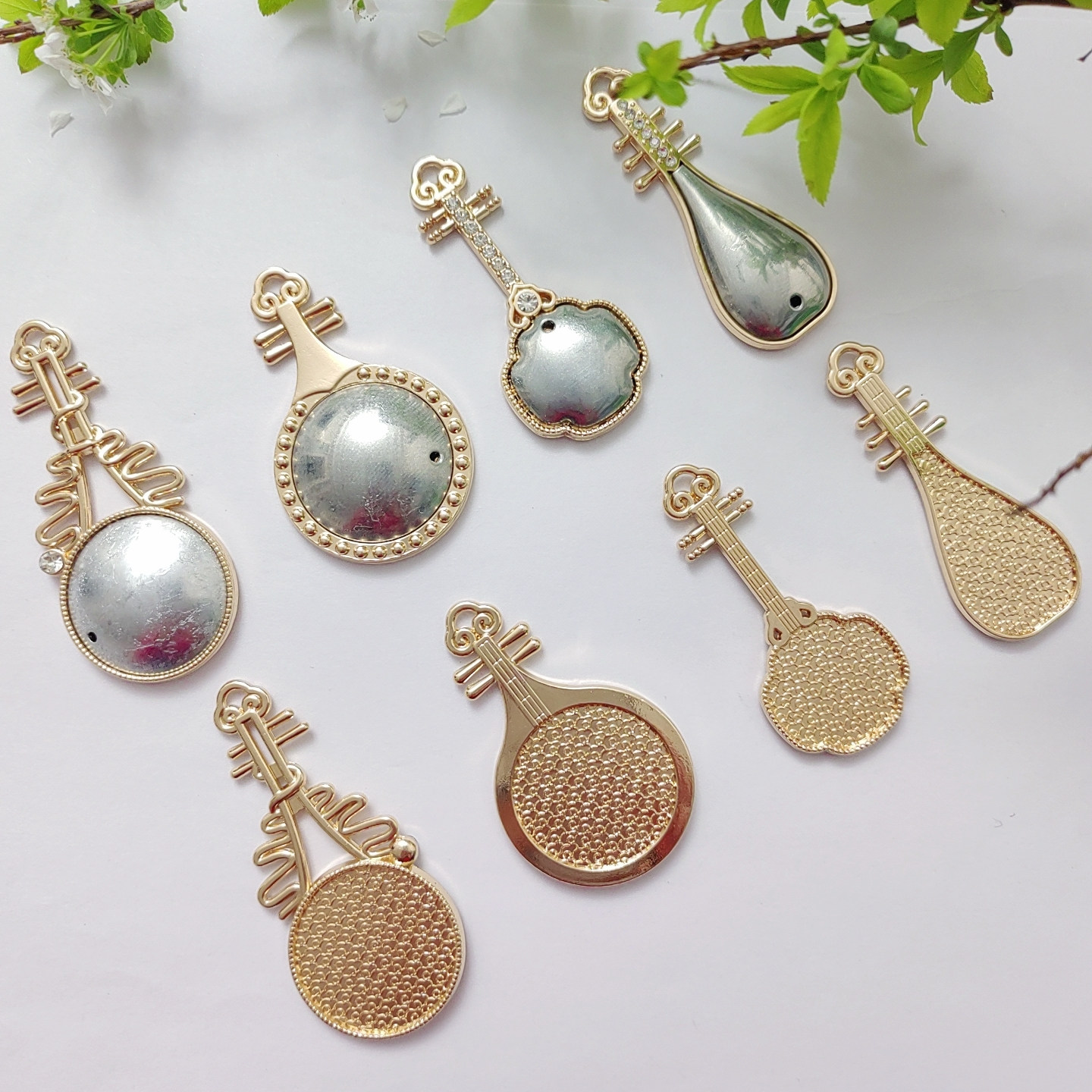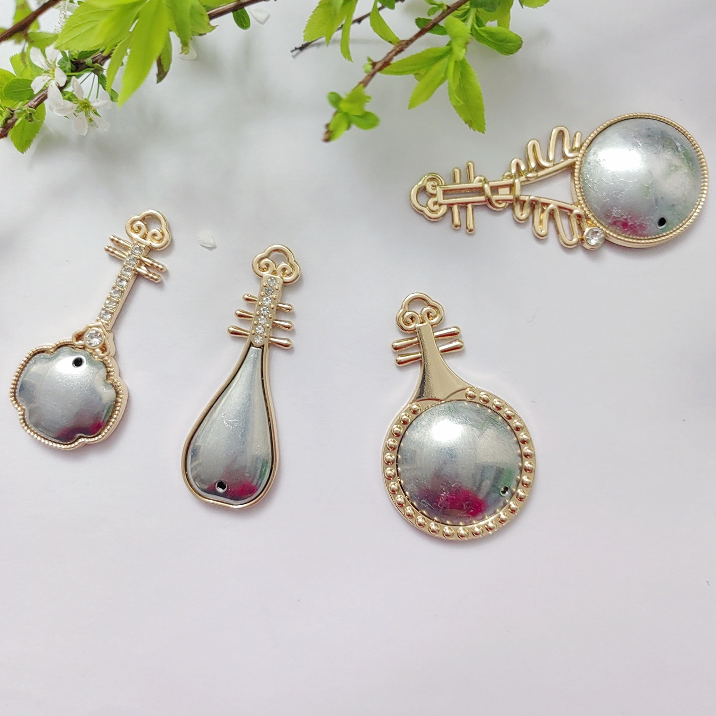 📚 宋锦螺钿点翠DIY压襟挂件底托新中式葫芦琵琶金属底托-非成品