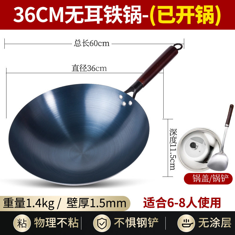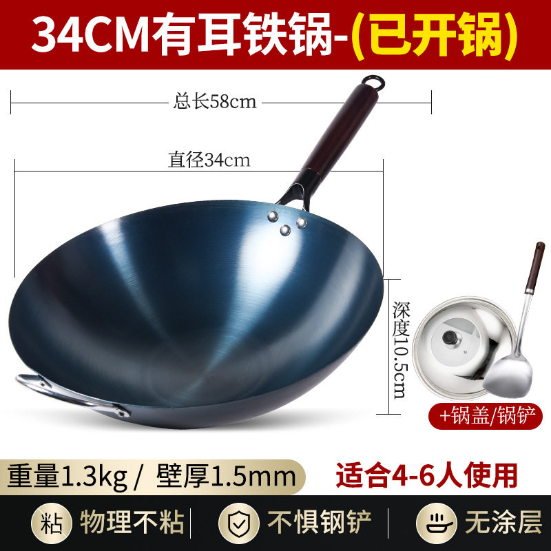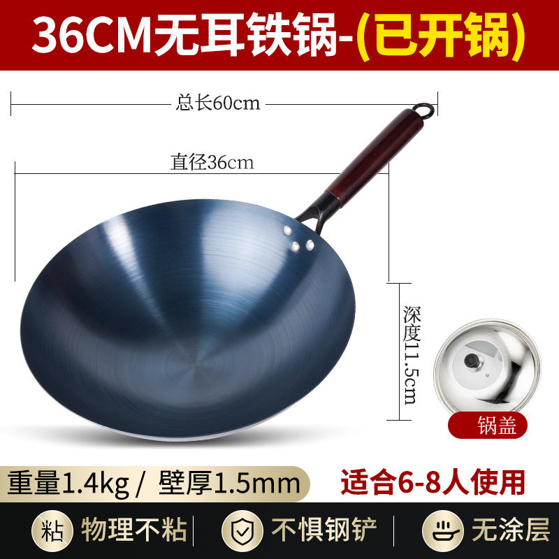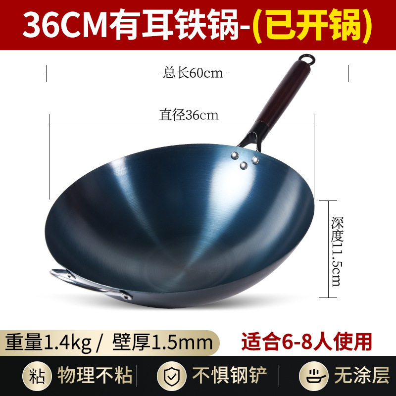 📚 烤蓝铁锅老式传统章丘炒菜锅已开锅无涂层家用不粘锅燃气灶适用