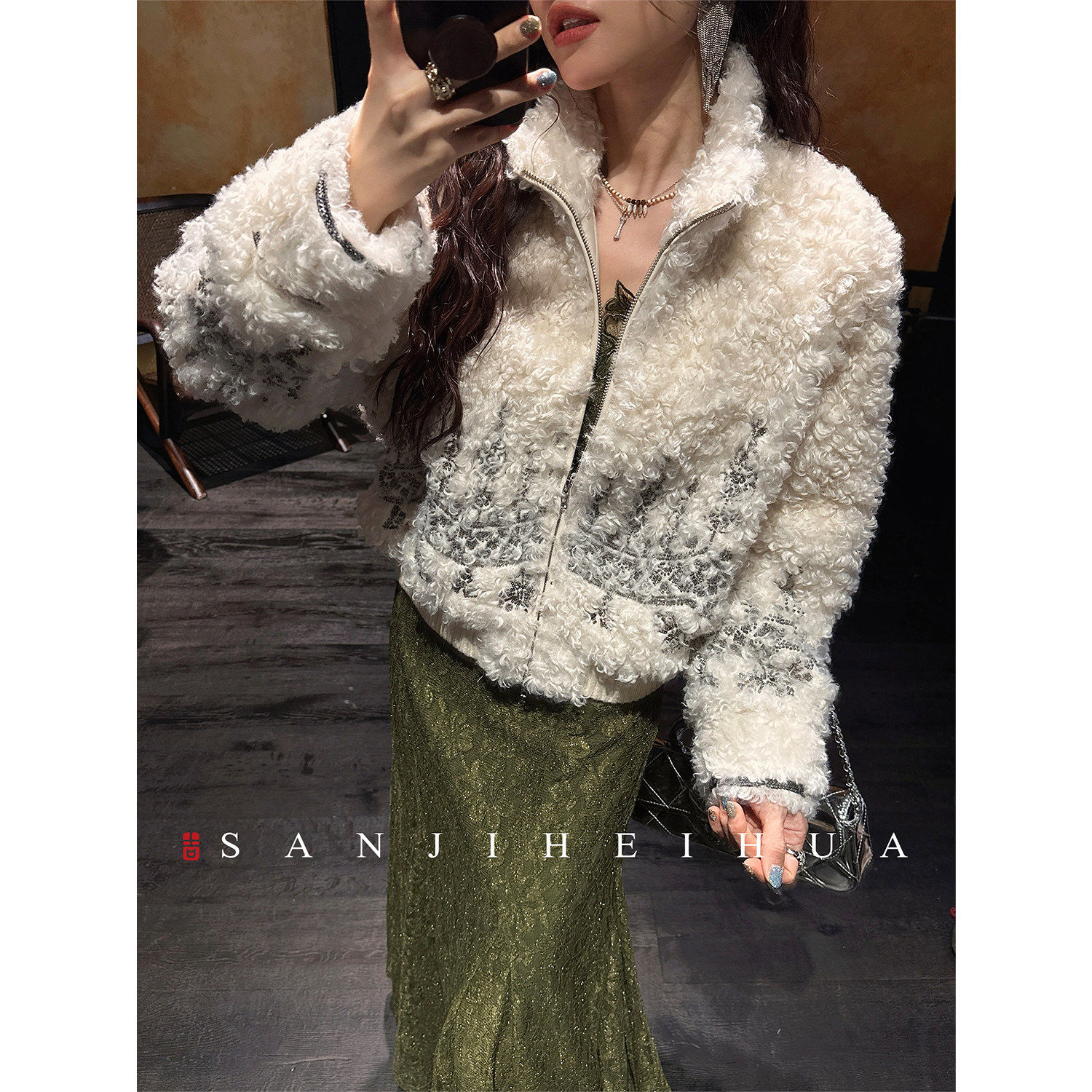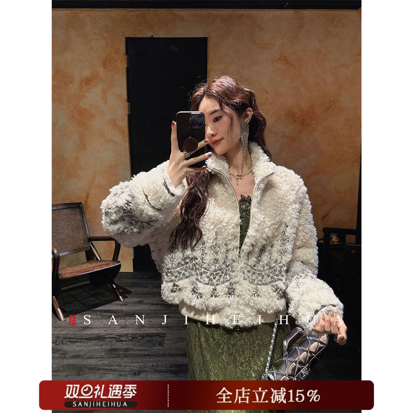📚 【哼哈冰冰】【暮雪】新中式钉珠羊羔毛外套女装冬新款今年流行潮