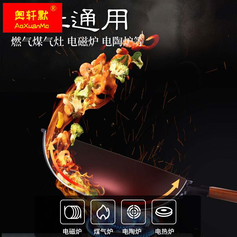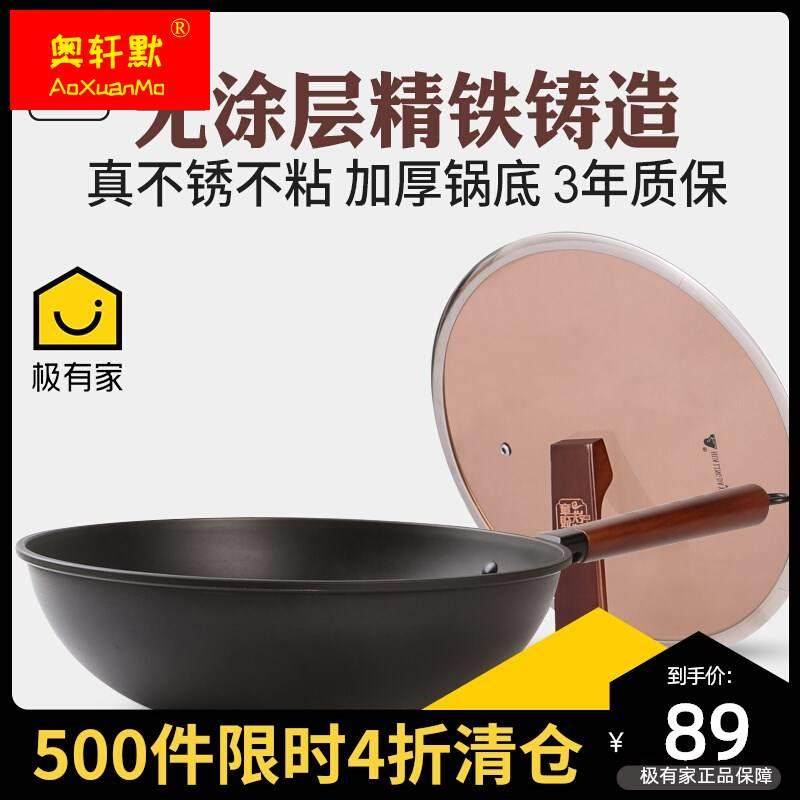 📚 章砚铁铺平底炒锅铸铁纯铁炒锅不沾锅32cm家用加厚无涂层老铁锅