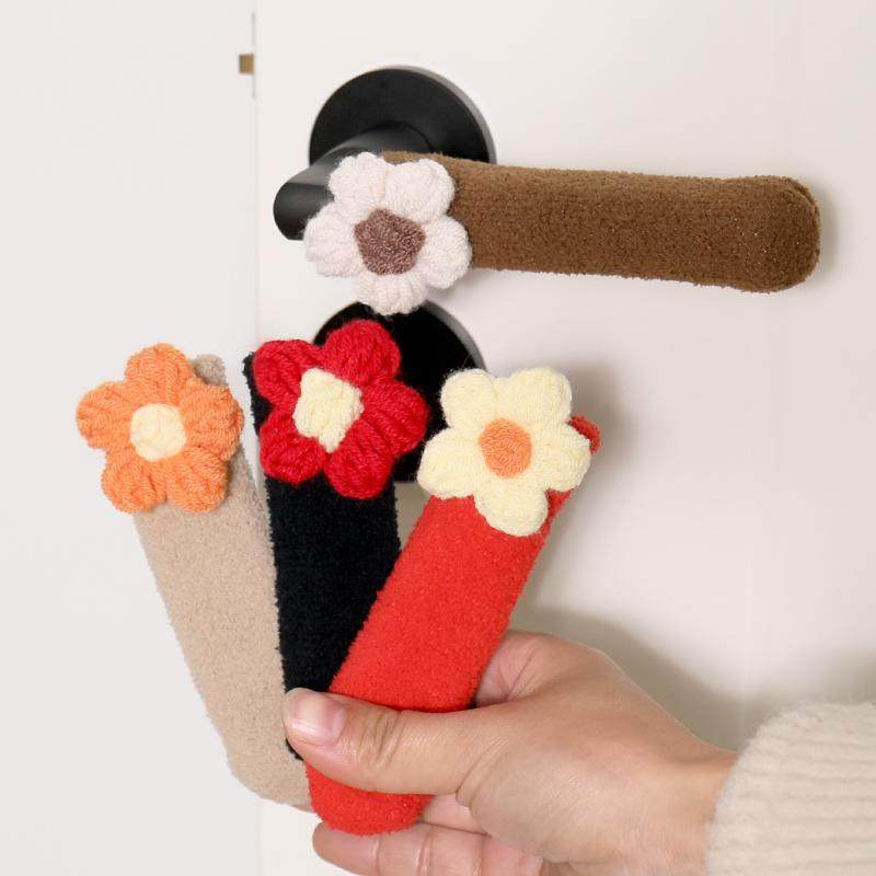 📚 冬季加厚针织门把手保护套入户房门卧室拉手防寒静电ins风仿毛绒
