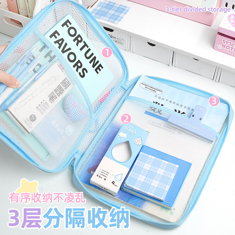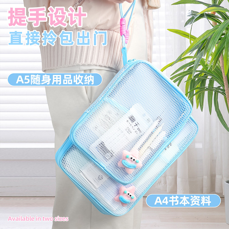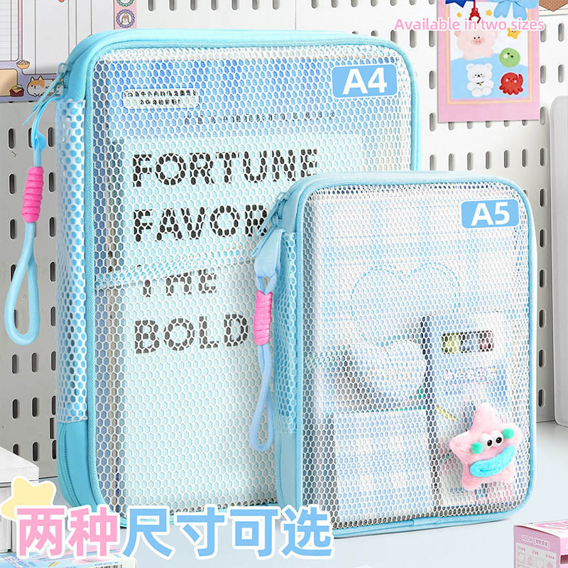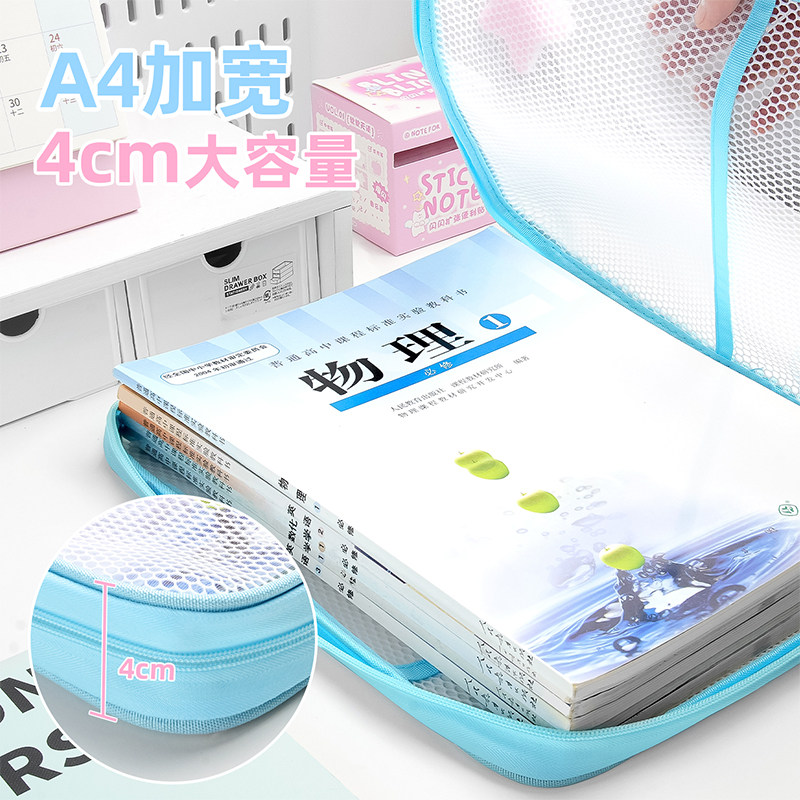 📚 多巴胺A4文件袋手提包袋女生初中小学生用科目分类袋高颜值ins风透明网纱补习袋拉链式a5整理书本试卷收纳袋
