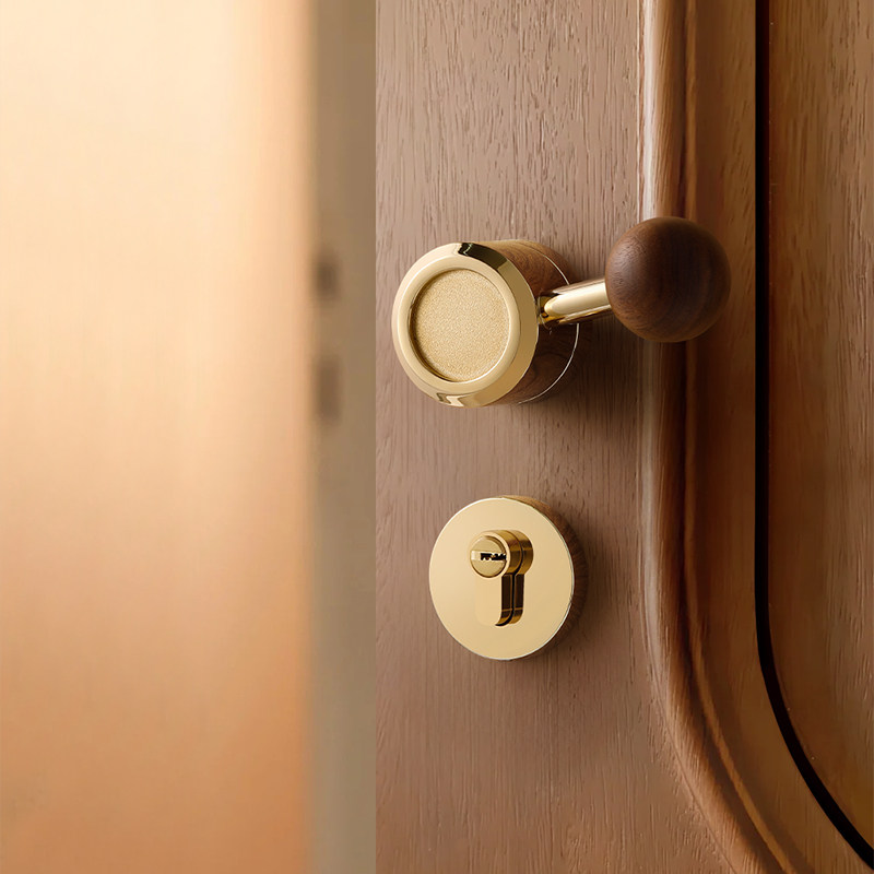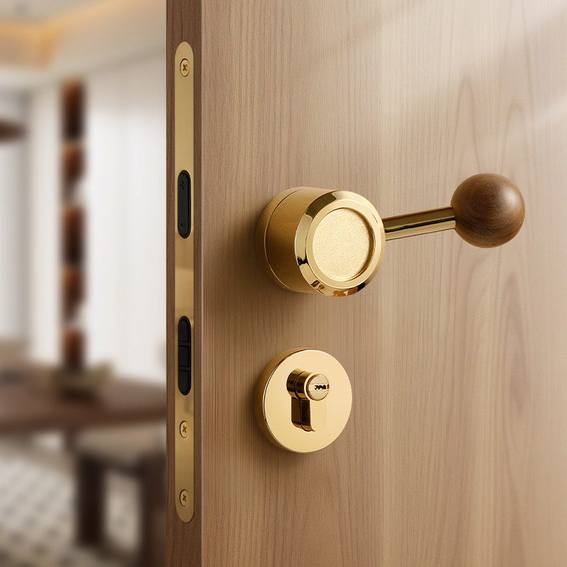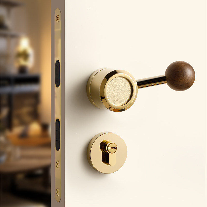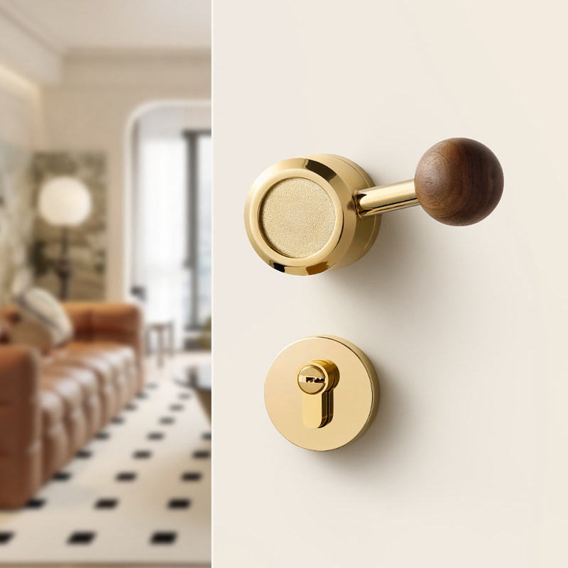 📚 金色卧室门锁室内木门磁吸静音房门锁家用中古风胡桃木圆球门把手