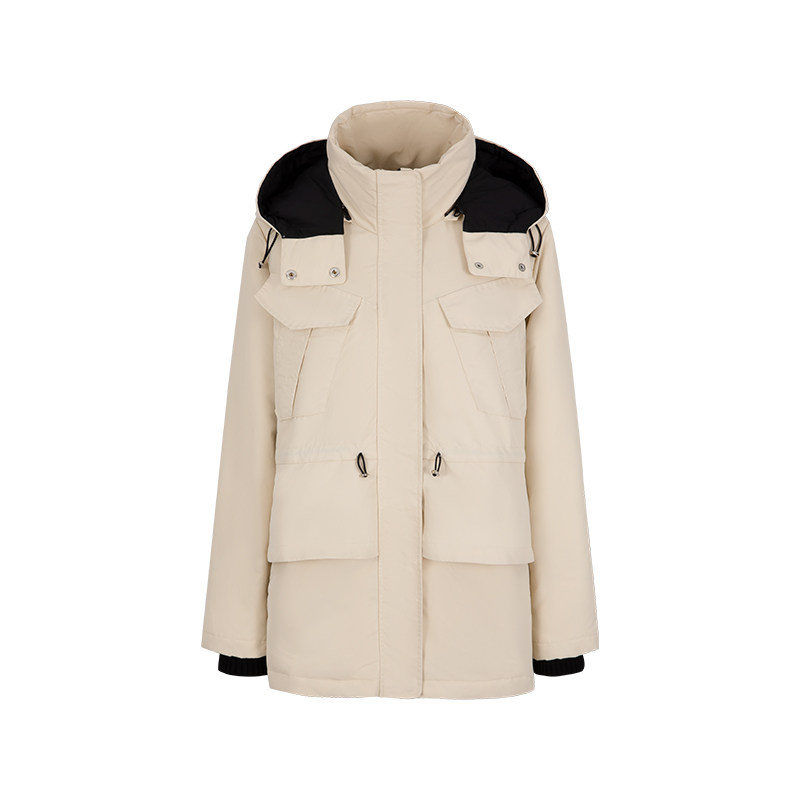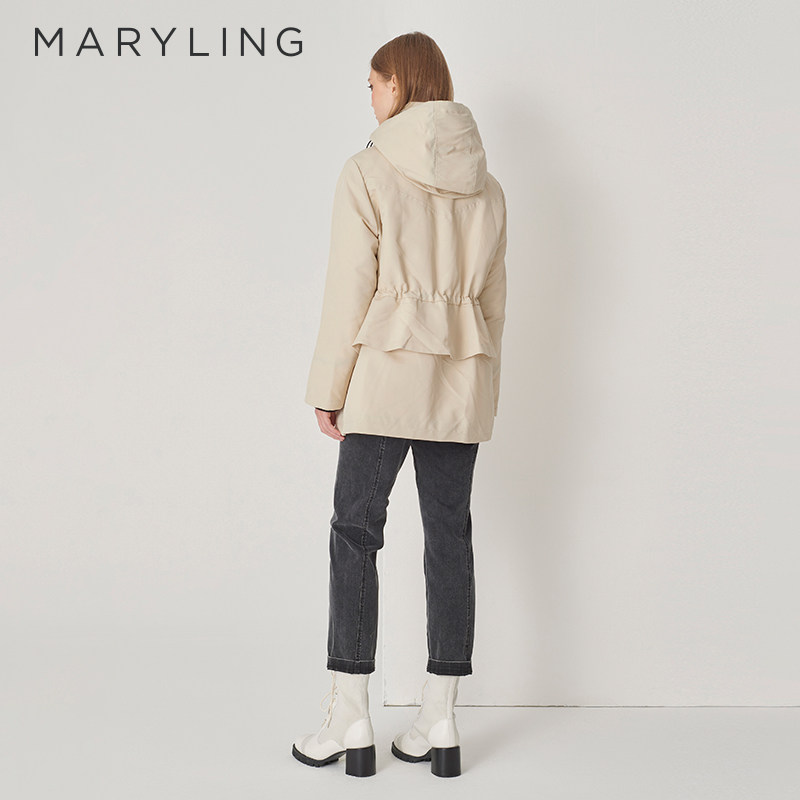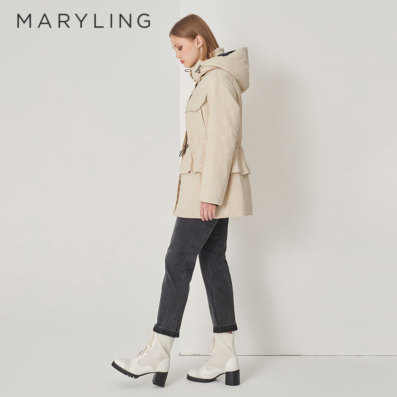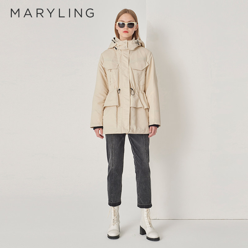 📚 MARYLING玛俪琳冬季新品米白色休闲抽绳连帽羽绒服A1DHW98040
