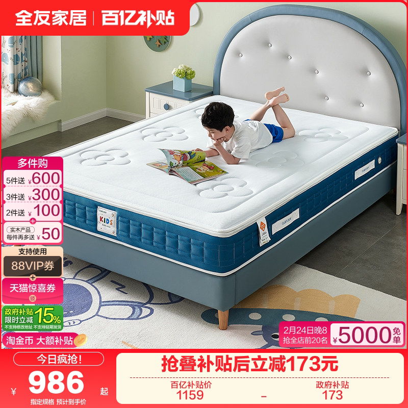 📚 全友家居抑菌防螨护脊椰棕乳胶儿童床垫卧室家用弹簧硬床垫1米5