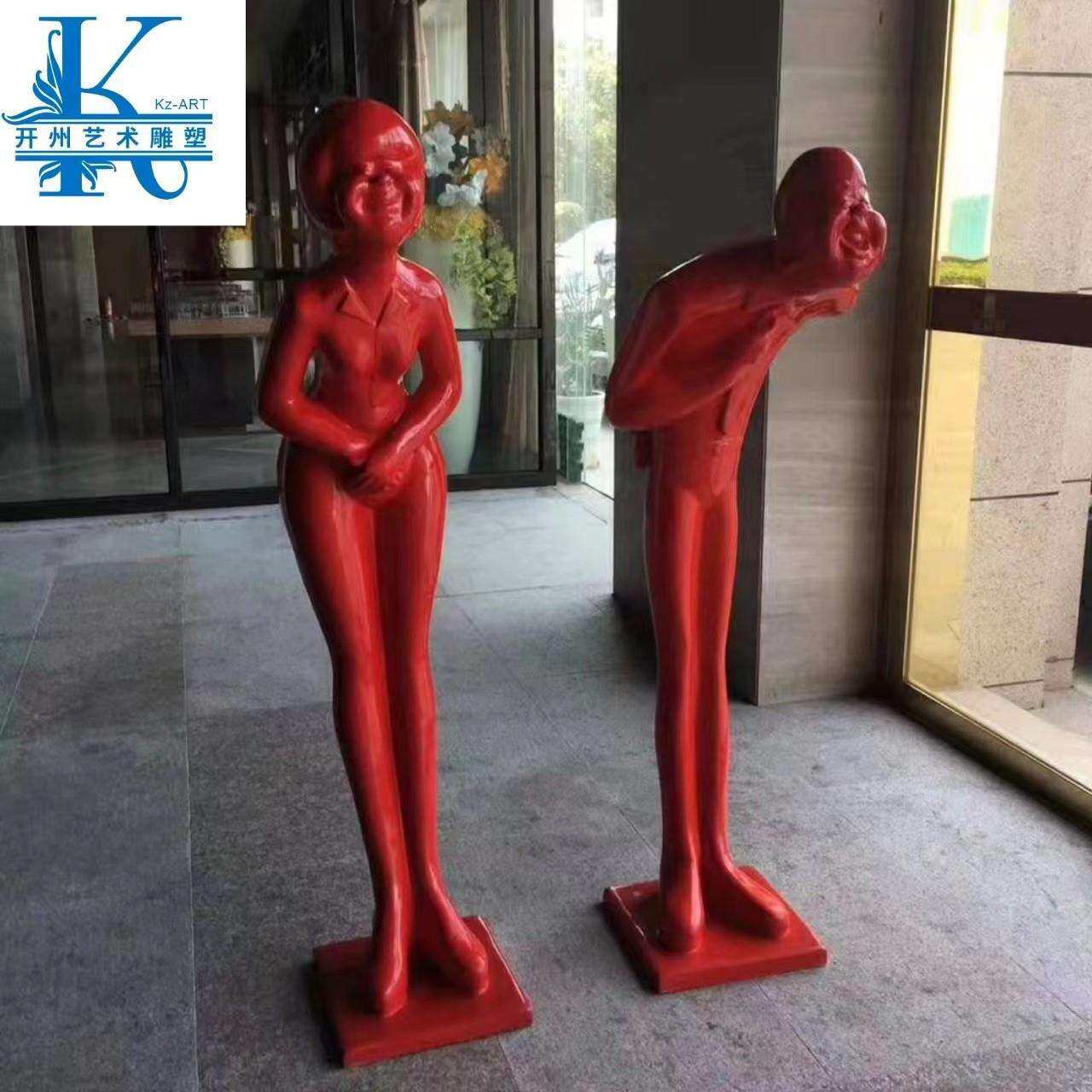 📚 玻璃钢鞠躬迎宾人物雕塑酒店餐厅KTV开业礼门口招财树脂落地摆件