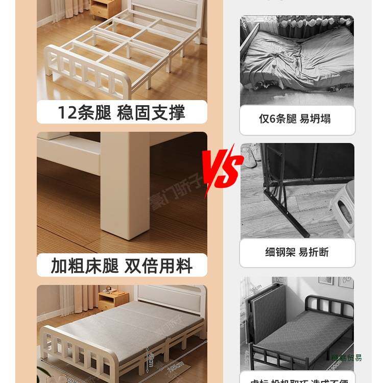 📚 折叠床单人床家用成人简易床小床1米2出租房卧室硬板结实铁床绢花