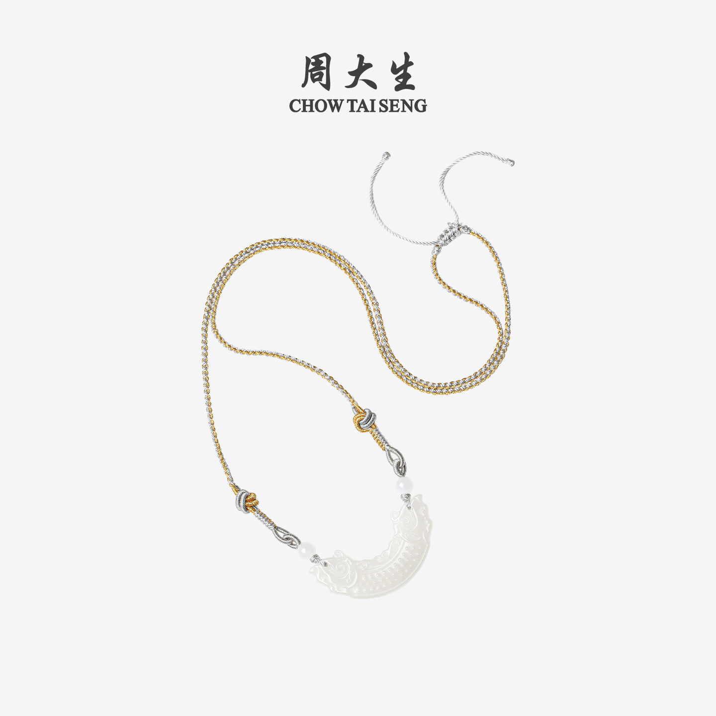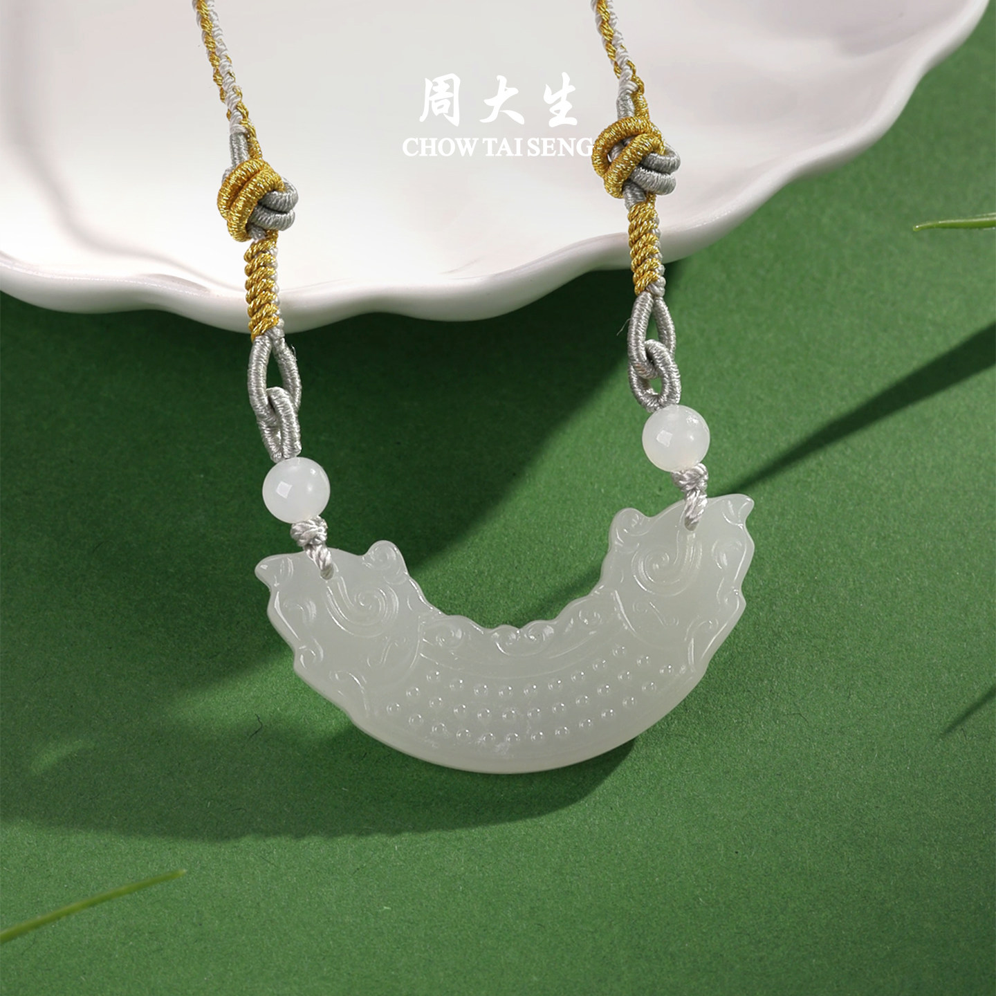📚 周大生和田玉吊坠女玉石项链青白玉双龙玉璜佩挂坠生日礼物送女友