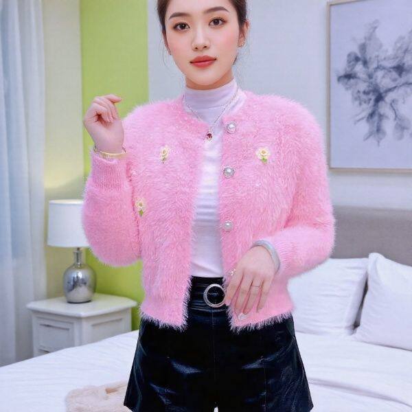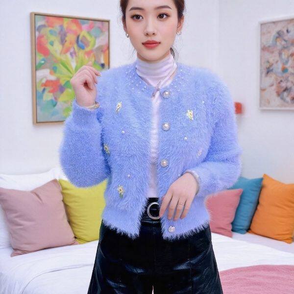 📚 外套重工香风钉珠开衫毛衣2025秋冬新款水貂绒短款毛外套上衣外穿