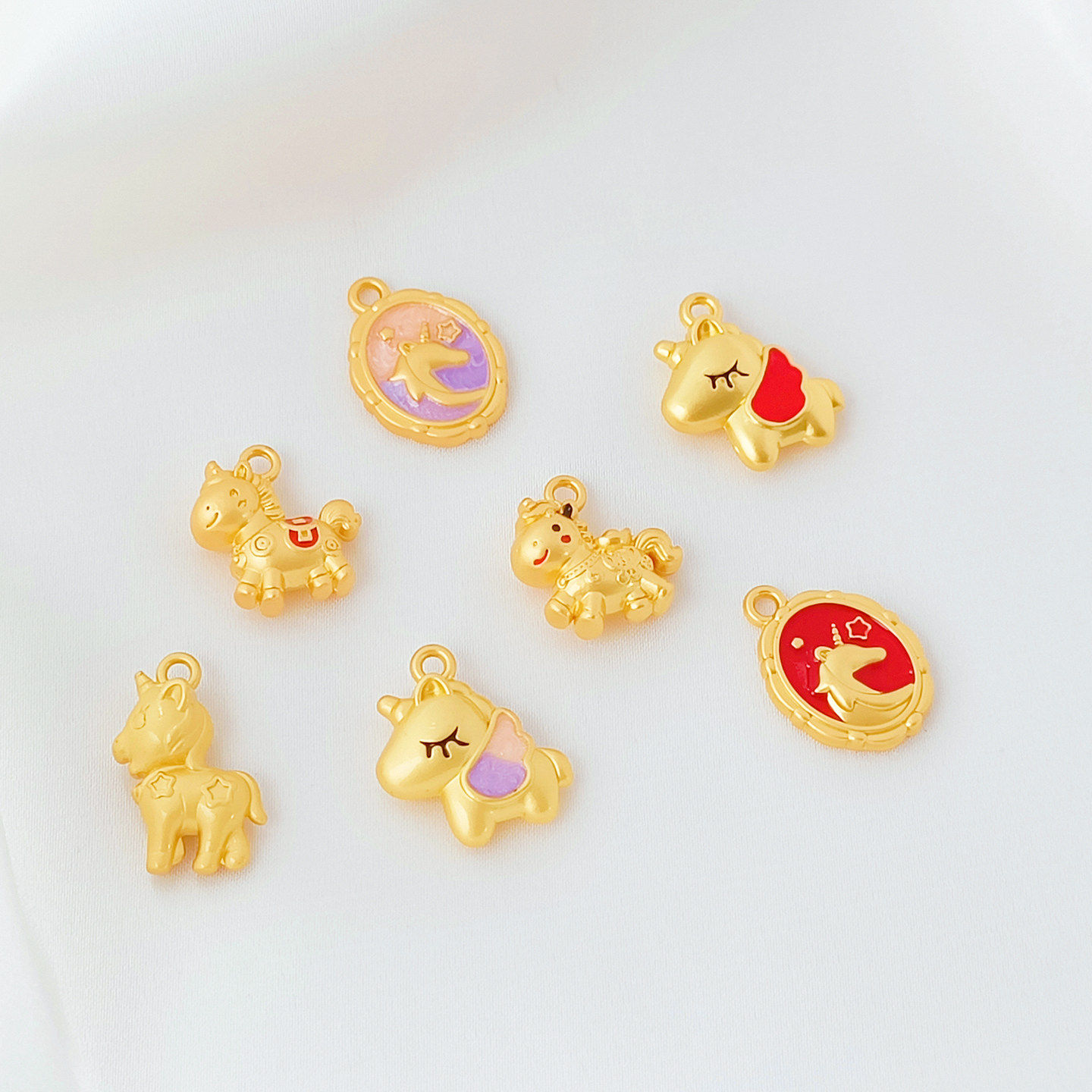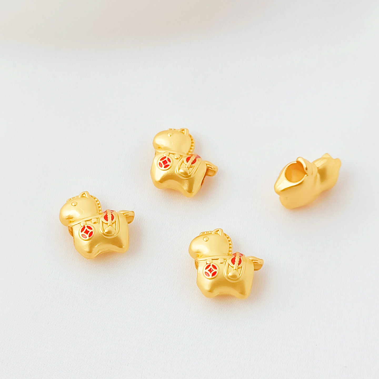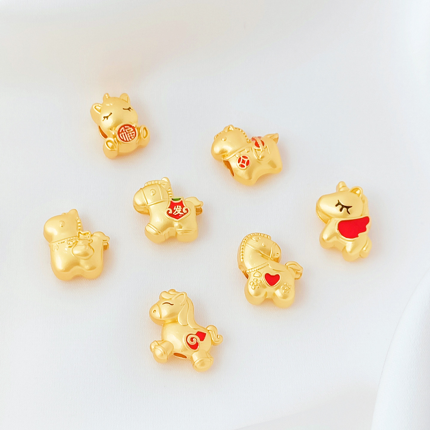 📚 18K古法金滴油招财生肖马隔珠手工diy手链项链飞马吊坠饰品配件
