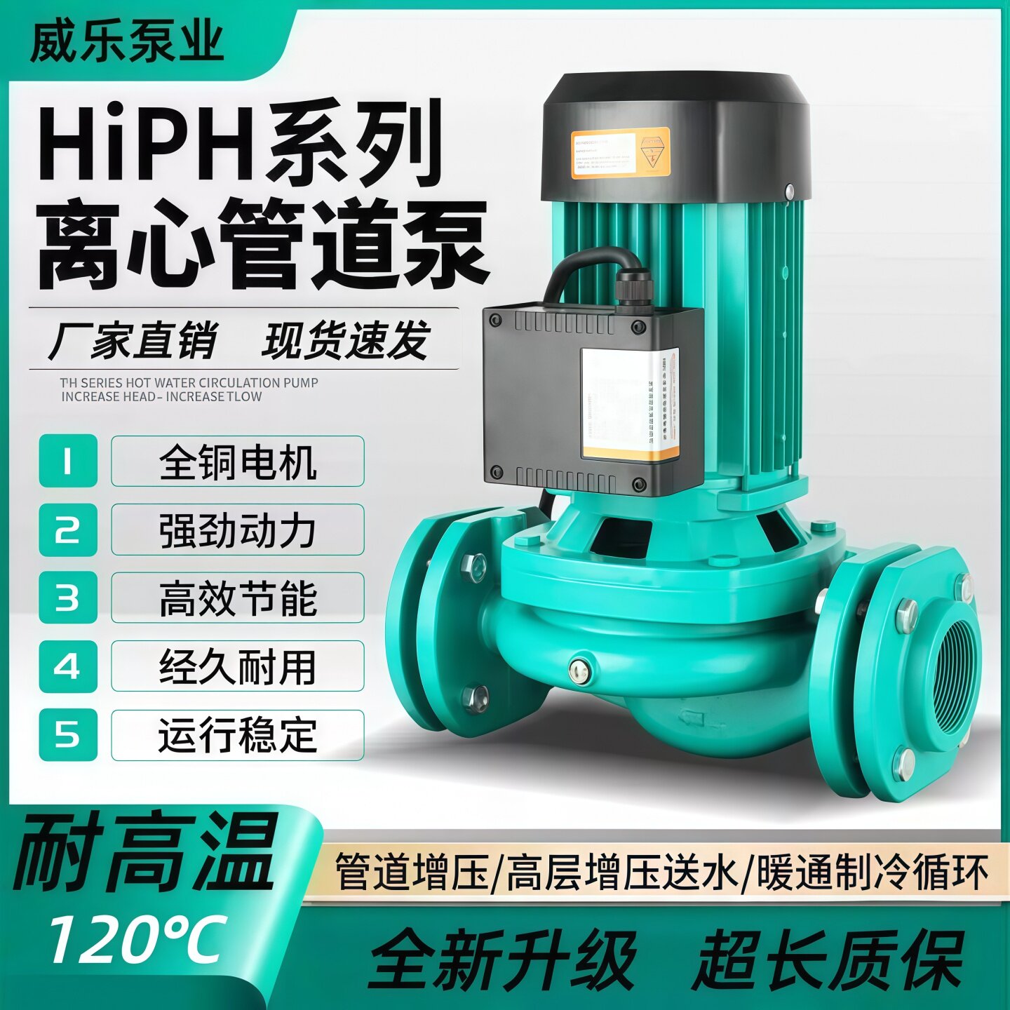 📚 HiPH 3-300EH静音大流量空气能太阳能泵冷热水循环增加泵立式管道