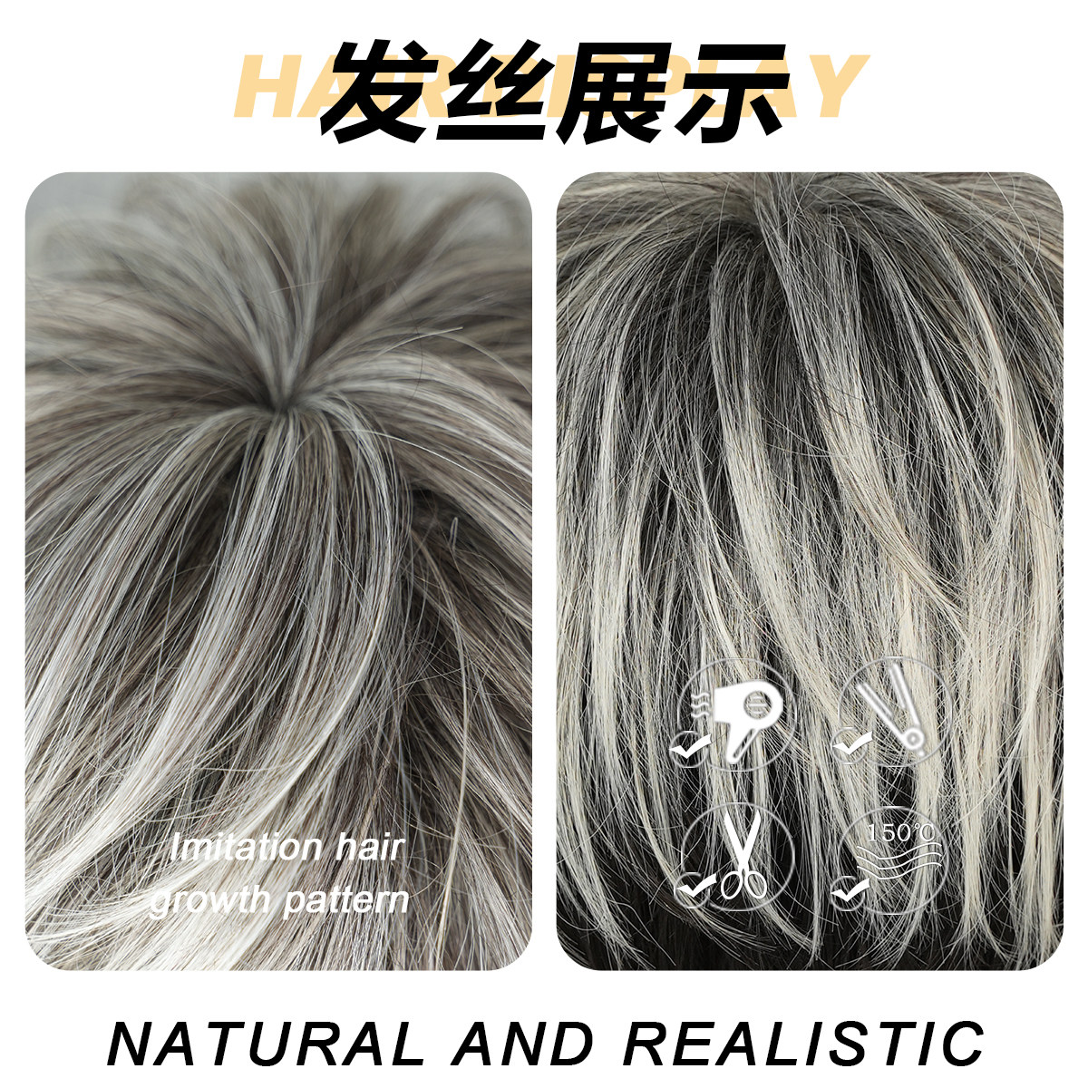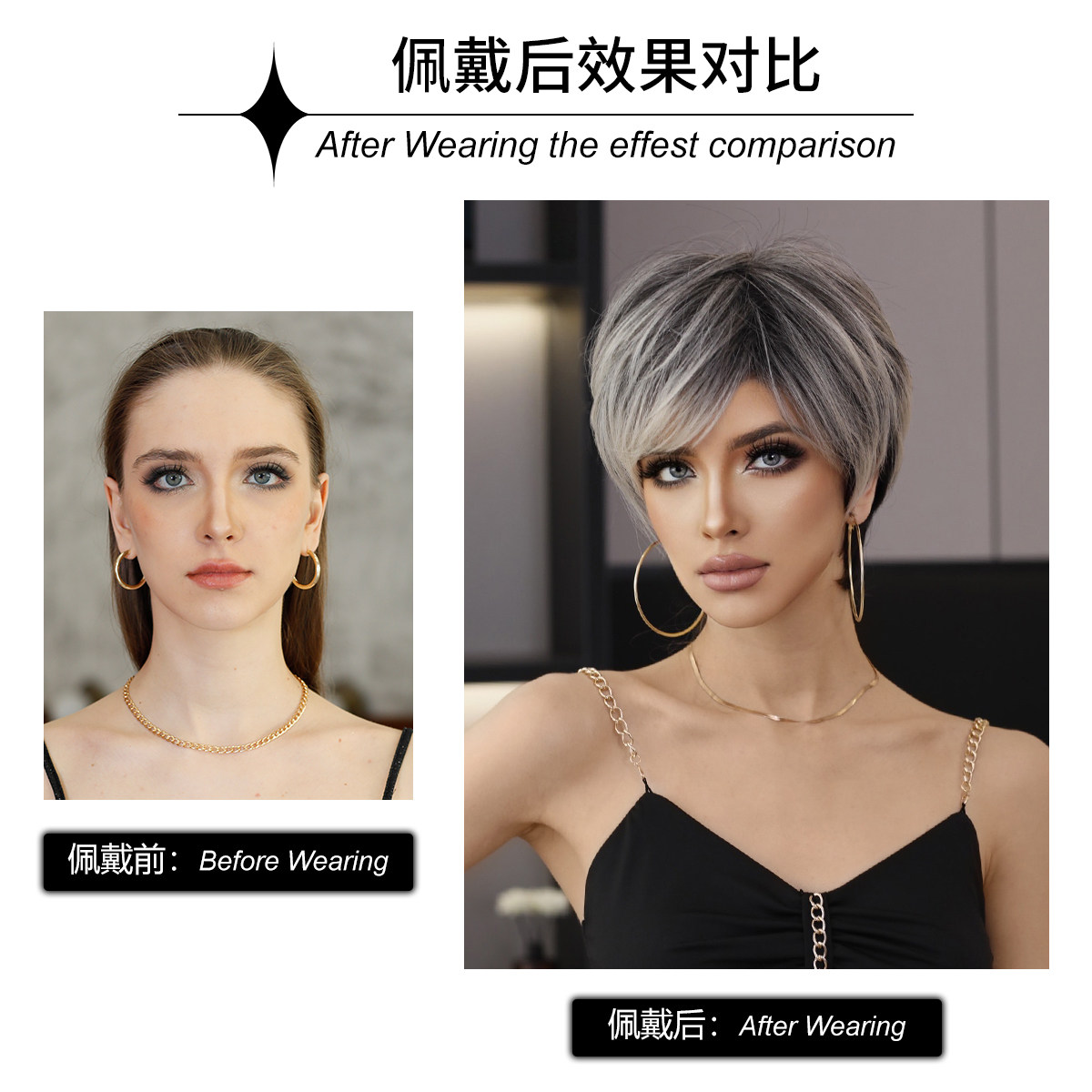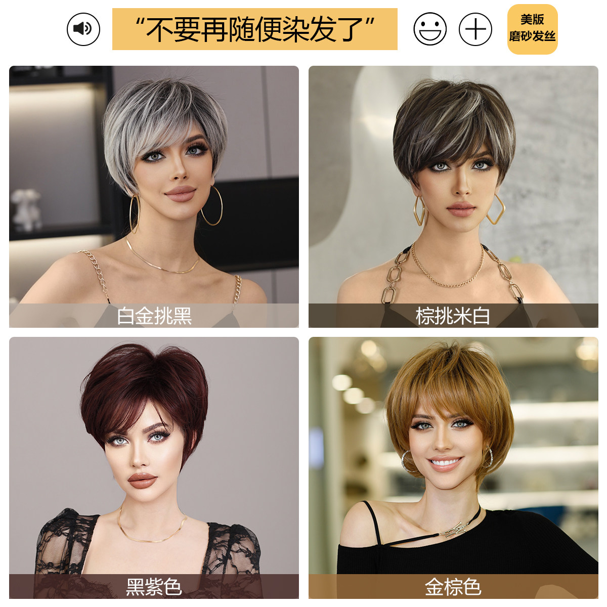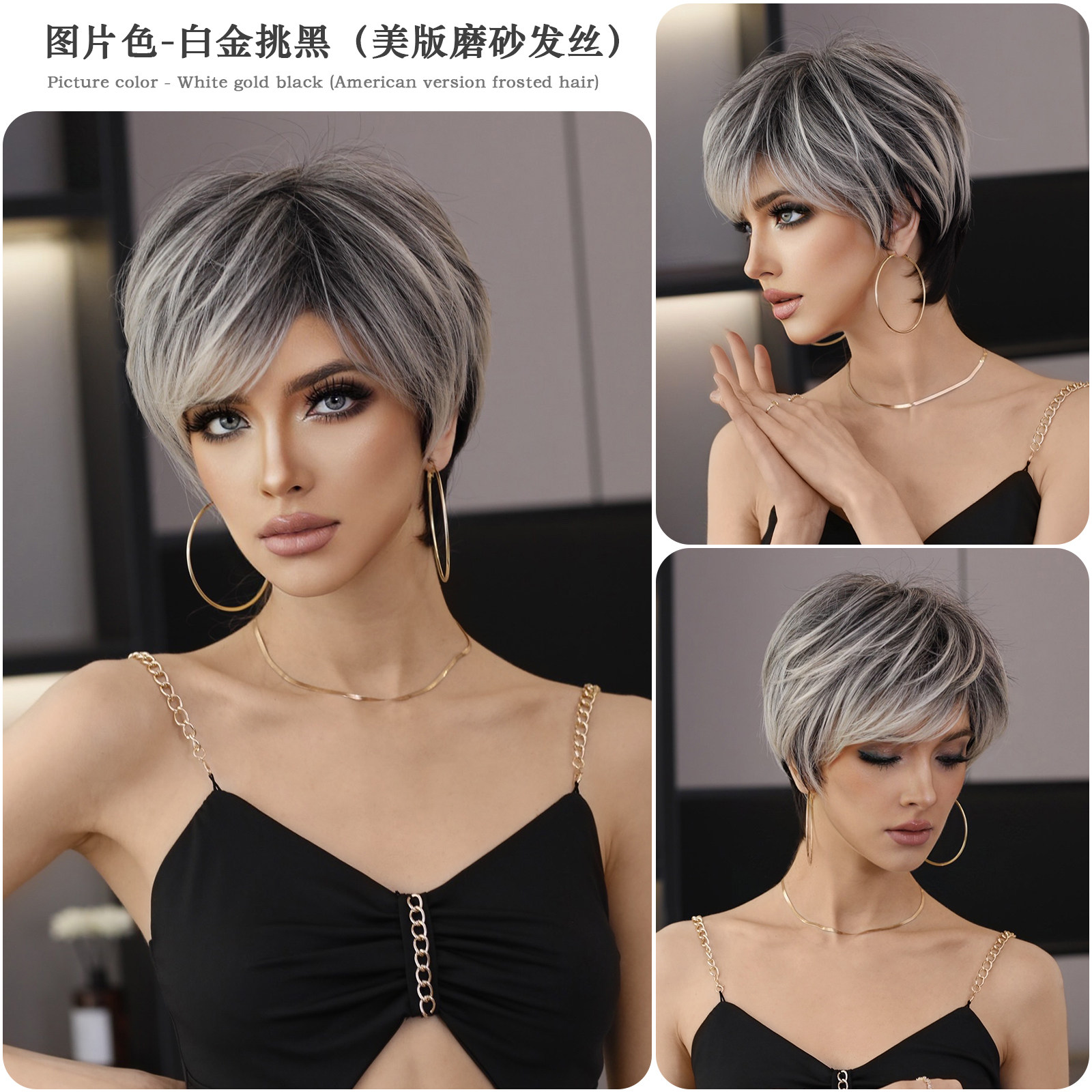 📚 wig欧美假发全头套女仿真人发丝假发套短发白金挑黑女士发型自然