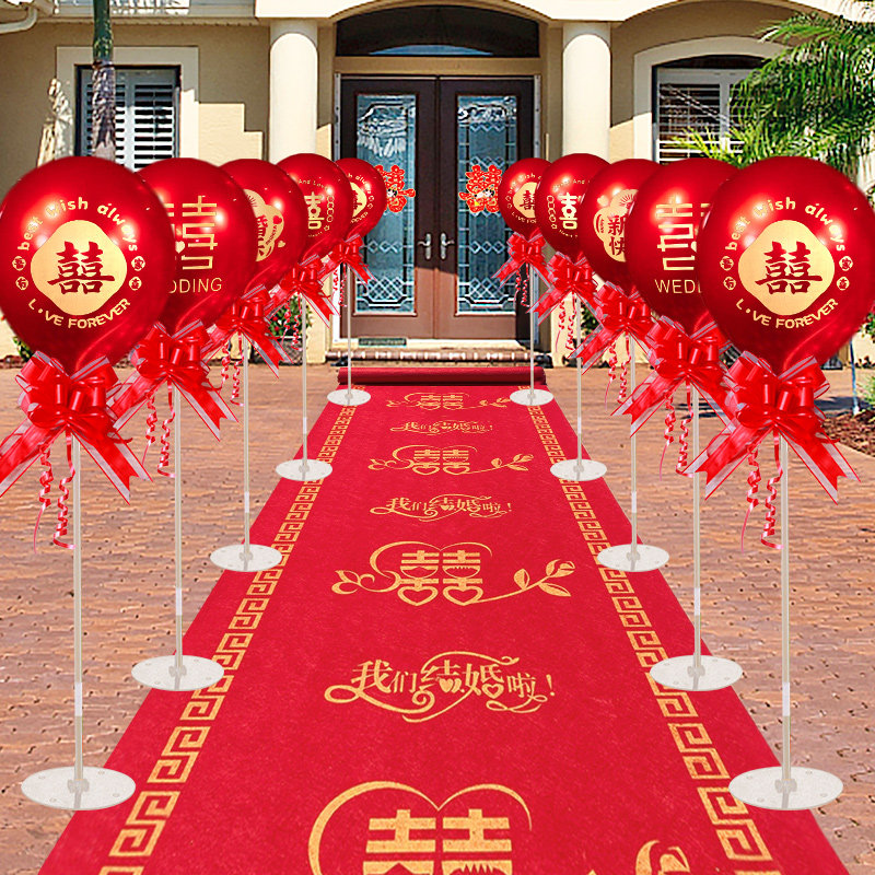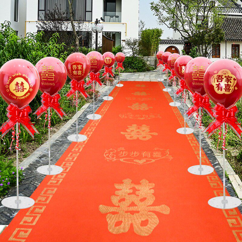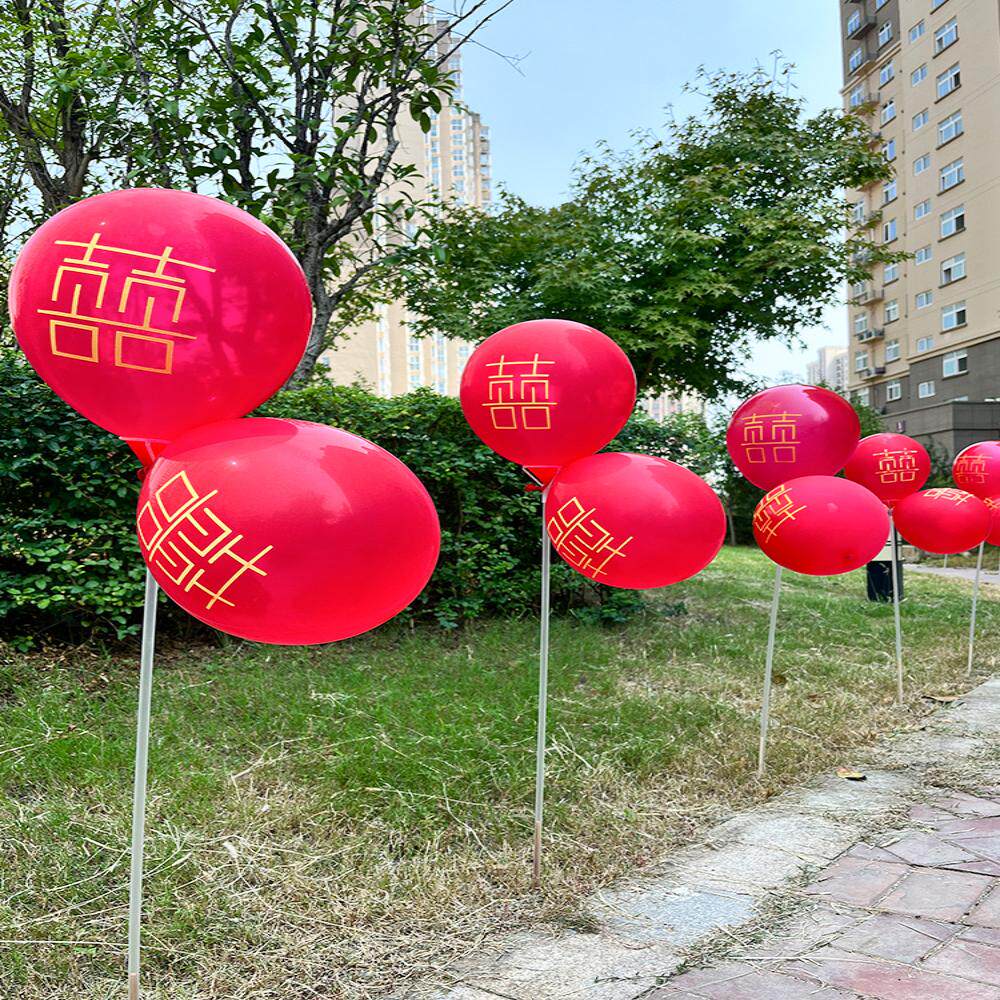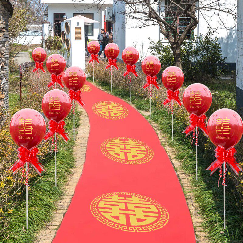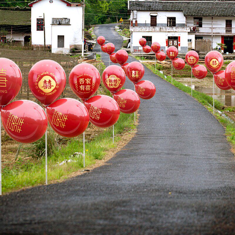 📚 订婚结婚红气球布置装饰农村室外场景引路立柱婚礼指示牌路引气球
