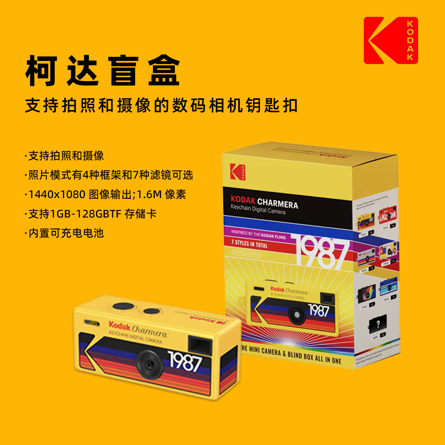 📚 现货即发!正品授权Kodak/柯达 Charmera钥匙扣迷你数码相机盲盒