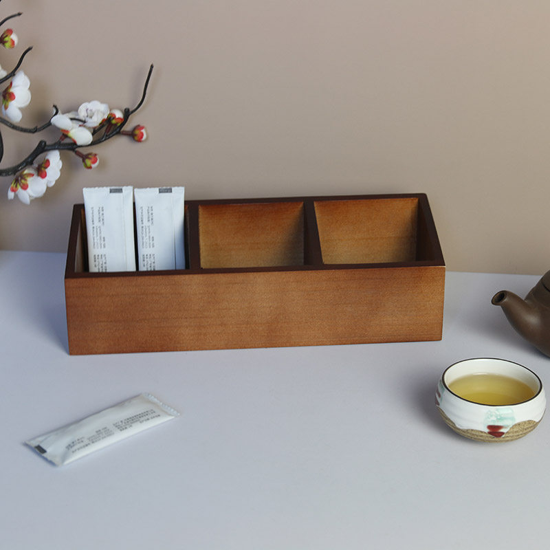 📚 实木酒店民宿茶包收纳盒咖啡包格子盒客房茶业咖啡套套分格收纳盒