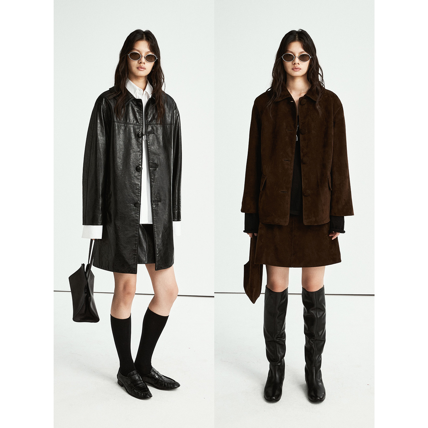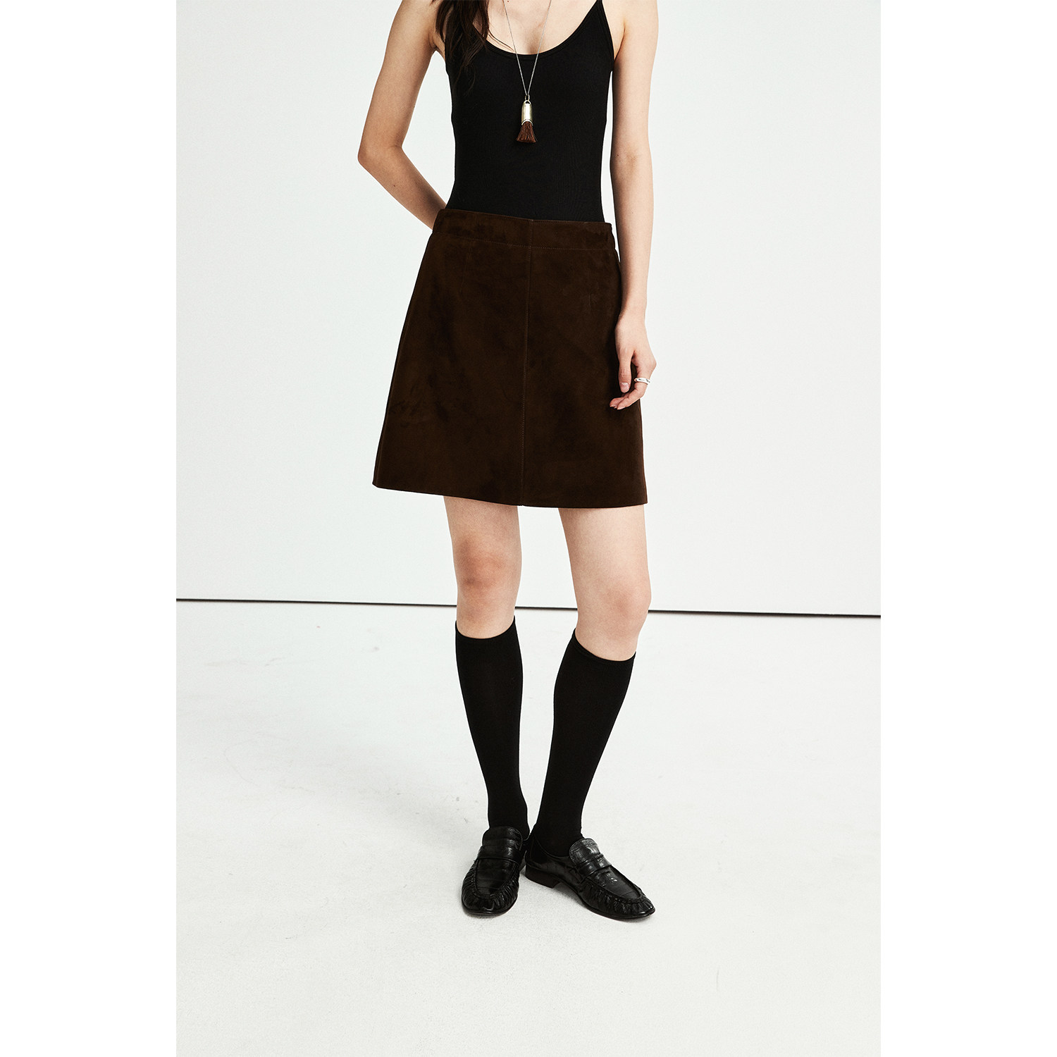 📚 MRS Studios 进口反绒羊皮/蜡感羊皮 微A字真皮短裙半裙