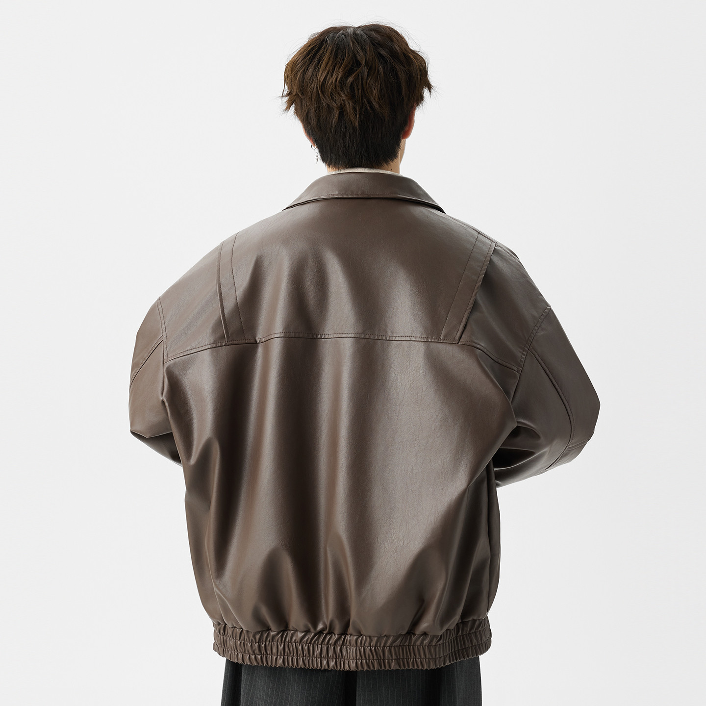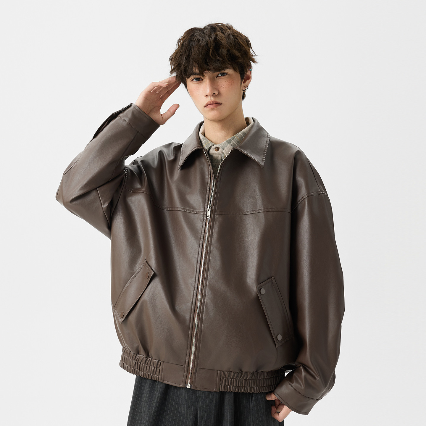 📚 男士棕色皮夹克男款冬季翻领机车风外套美式复古2025新款上衣百搭