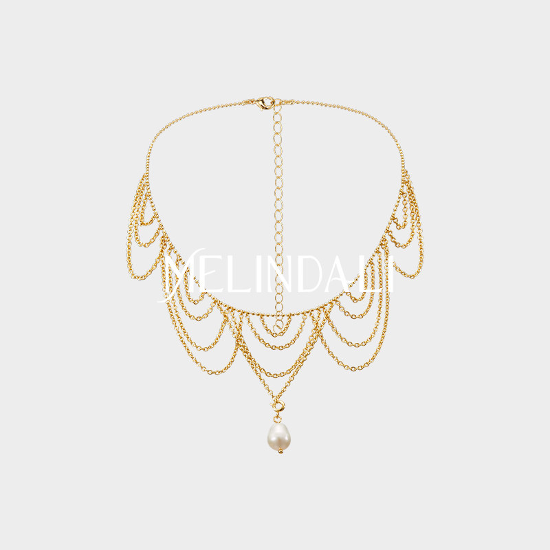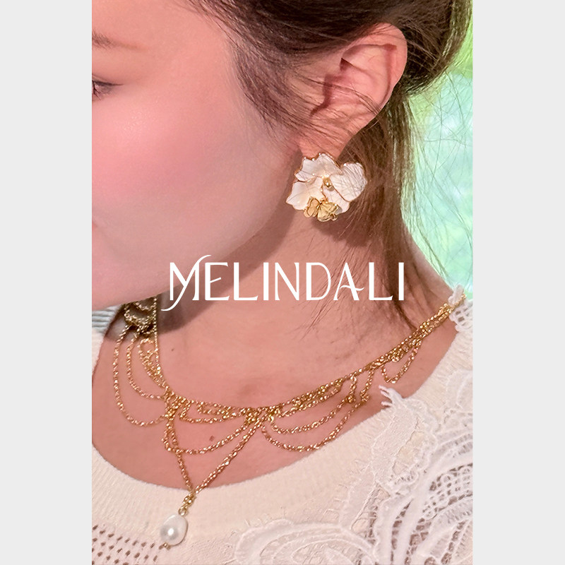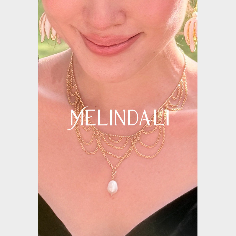 📚 MELINDA LI复古宫廷闪耀金调铜镀18k金珠饰扇形流苏项链