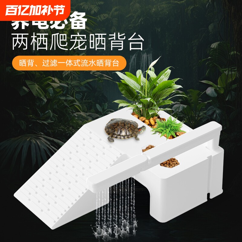 📚 养乌龟缸专用晒台爬台造景躲避雨淋过滤一体休息平台爬坡爬梯养龟