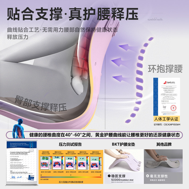 📚 BKT护腰坐垫人体工学久座神器靠背椅姿托办公室部支撑官方旗舰店
