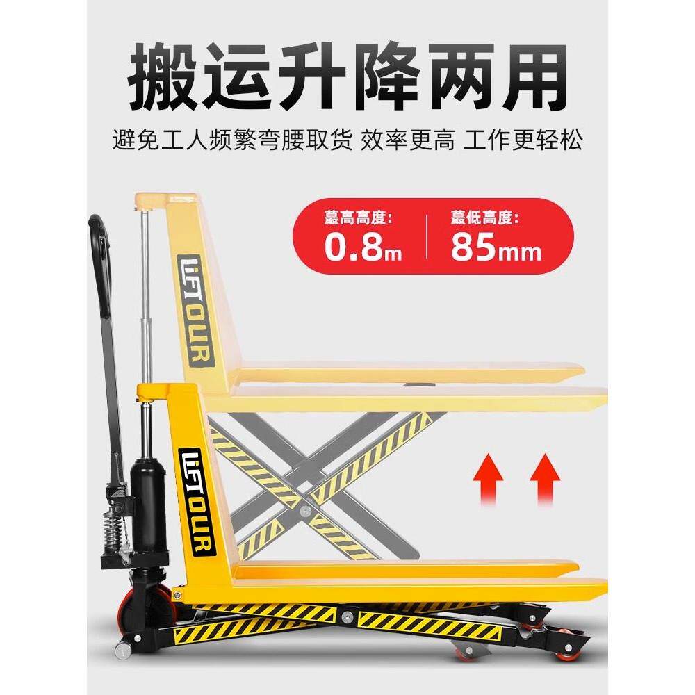 📚 力拓高升程搬运车剪叉式高起升0.8m手动液压叉车升降作业组装台车