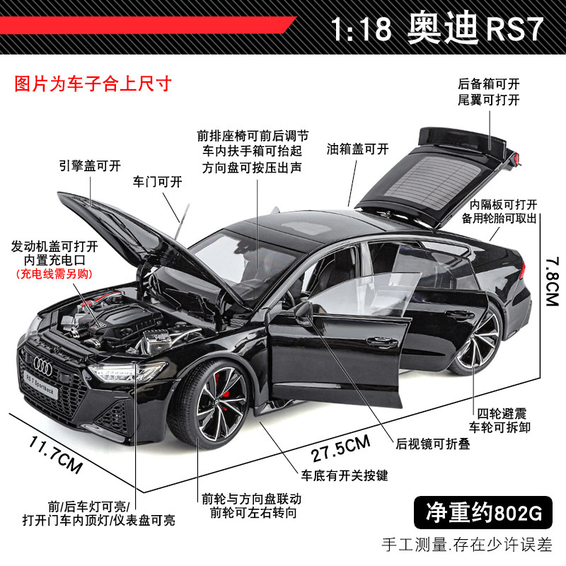 📚 合金奥迪rs7汽车模型仿真1:18遥控跑车玩具AUDI黑武士轿车摆件男