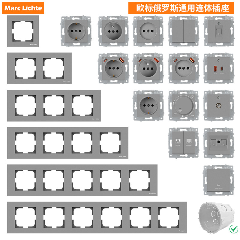 📚 80型法标德国欧式16A二圆德式深插电脑usb俄罗斯插座开关面板灰色