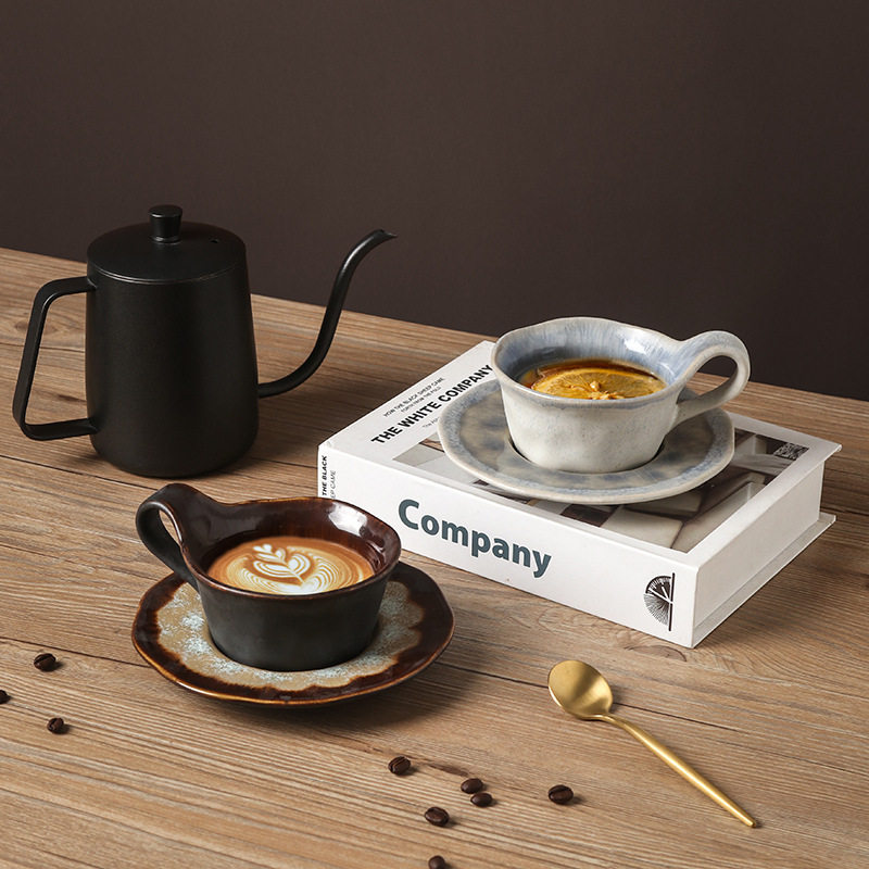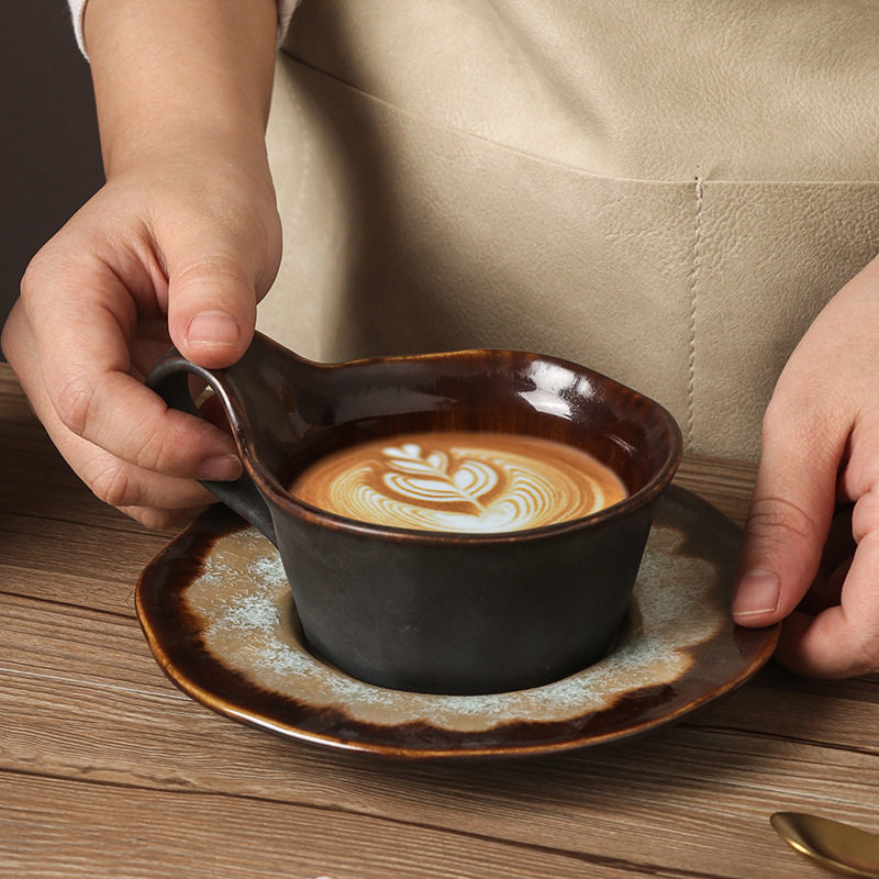 📚 VIANNA丨昭和风·BXCH手作咖啡杯碟中古窑变陶瓷拉花杯子下午茶杯