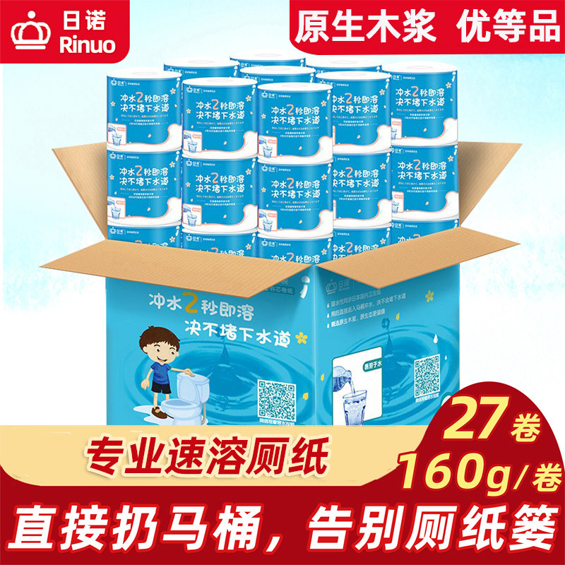 📚 日诺水溶性厕纸可溶解卫生纸厕所专用易降解融水卷筒纸160克*27卷