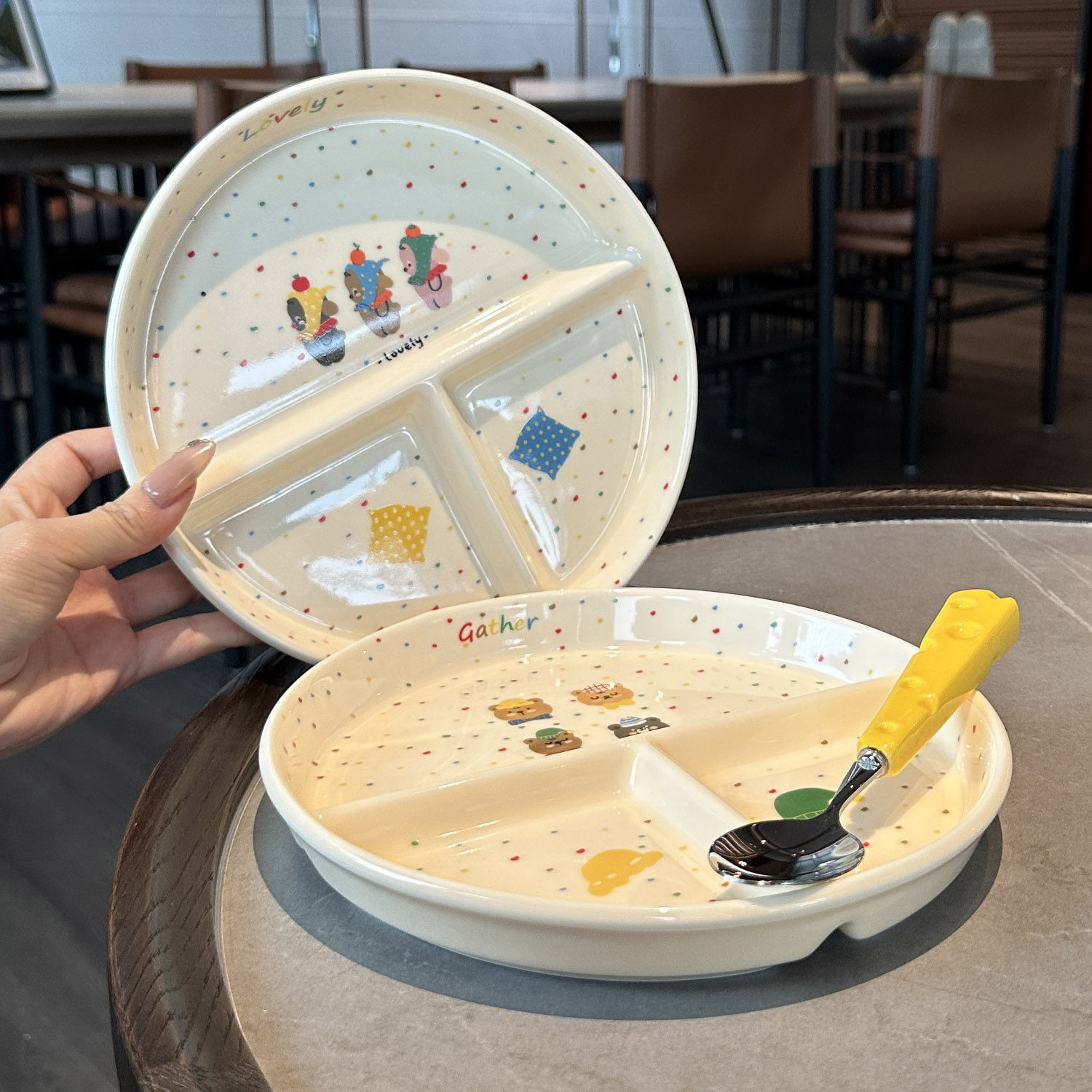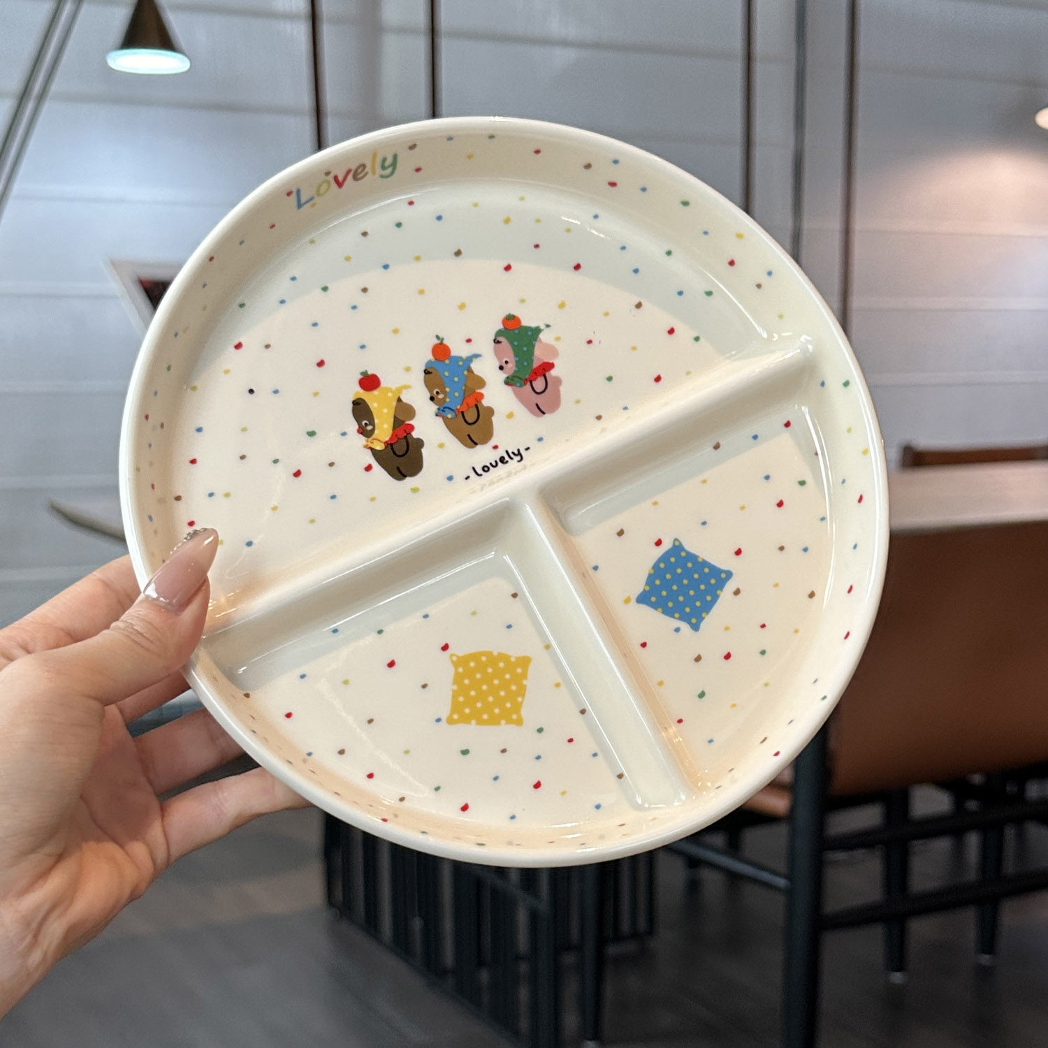 📚 【老板娘自留】 敲可爱ins韩式童话风陶瓷盘211分格餐盘轻食餐盘