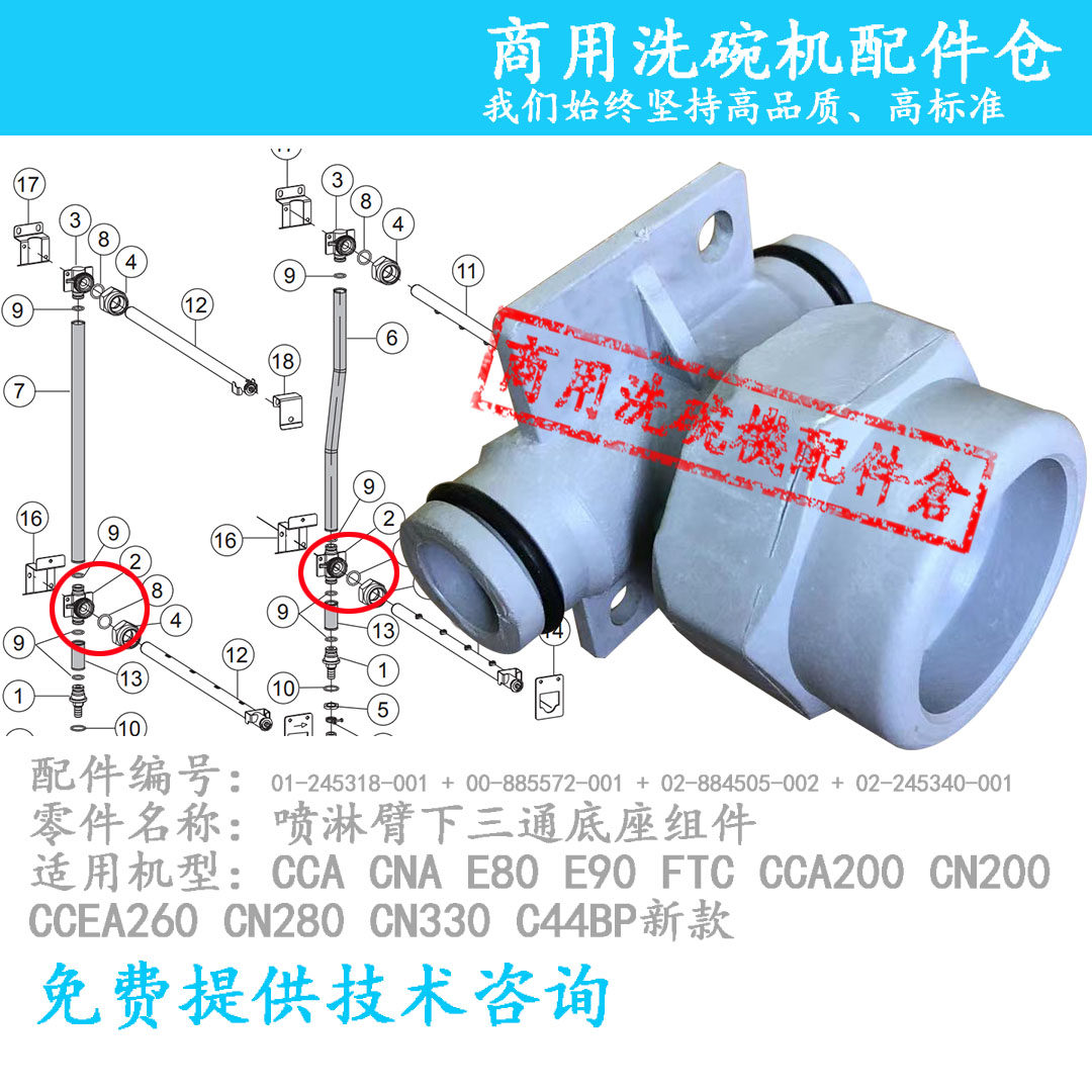 📚 HOBART霍巴特洗碗机 下三通组件 配件 高达 CCA/CNA 喷淋臂底座