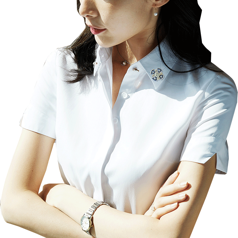 📚 雀后韩版夏装ol白领职业白色衬衣修身简约打底翻领短袖衬衫女
