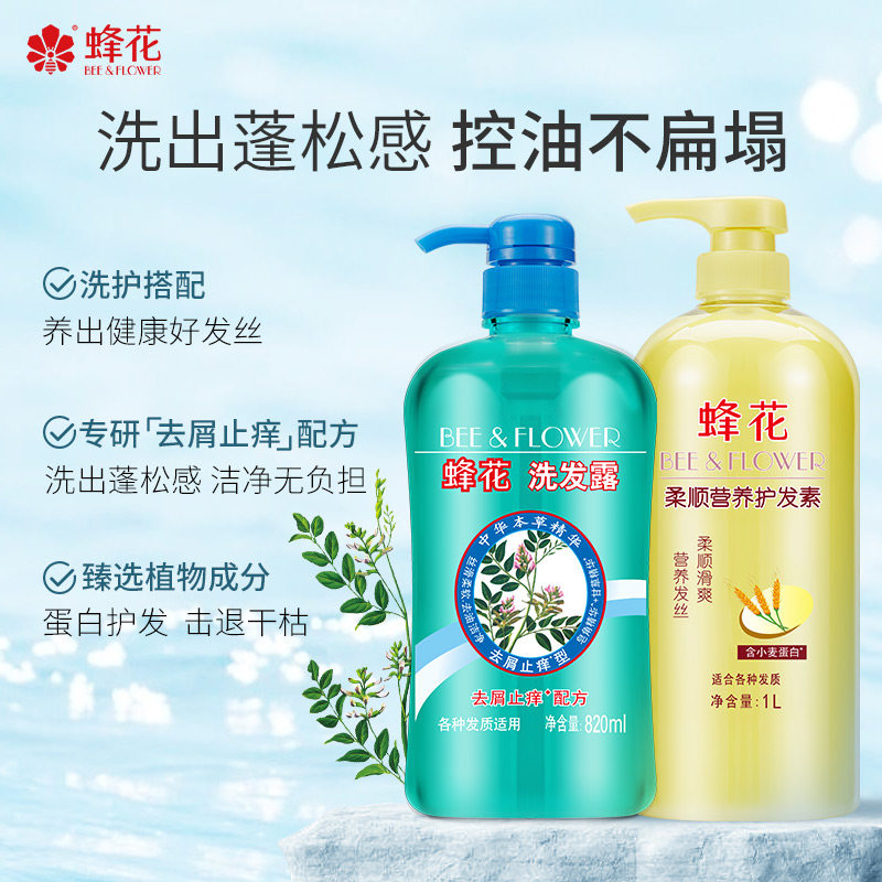 📚 蜂花洗护套装滋养柔顺毛糙营养护发素男女士控油去屑止痒洗发水