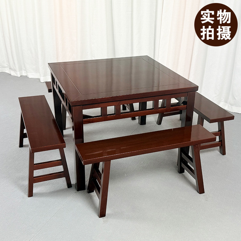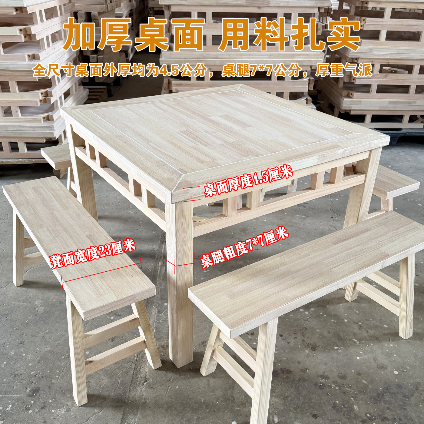 📚 中式实木八仙桌老式仿古餐桌农村家用中堂正方形桌子饭店桌椅商用