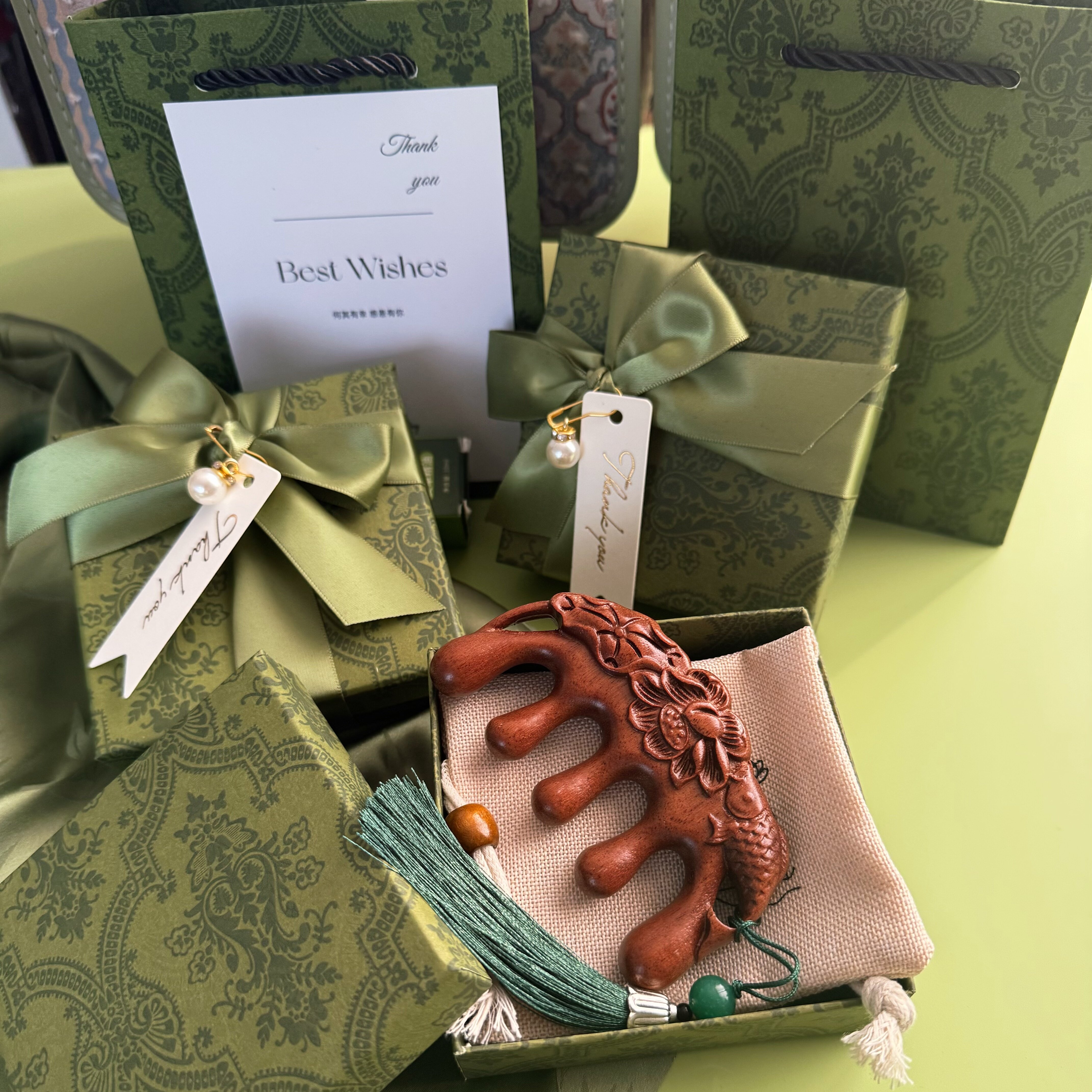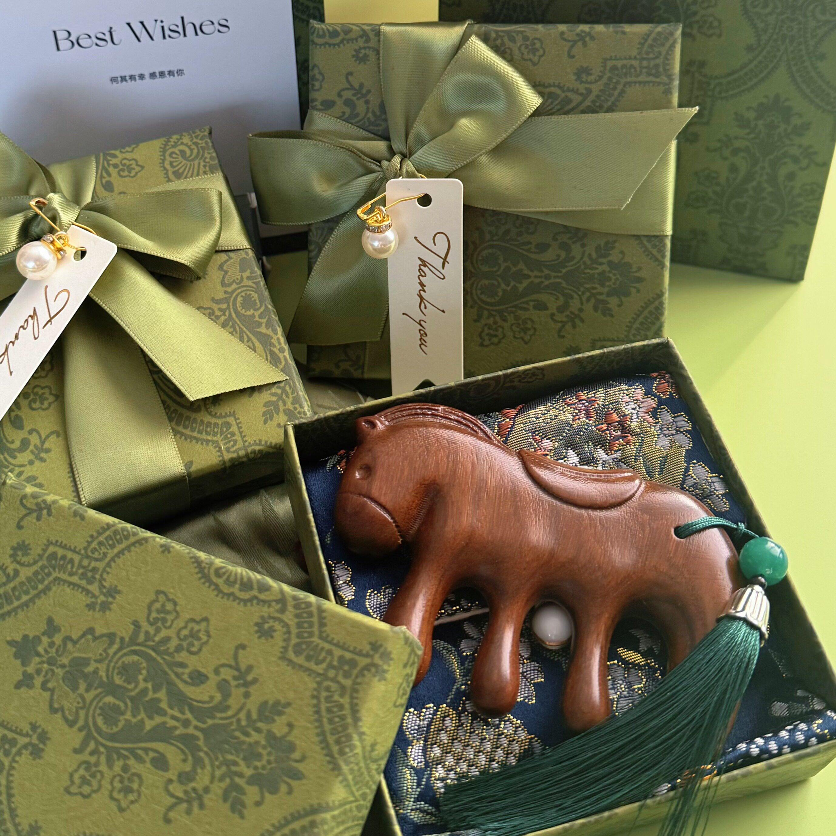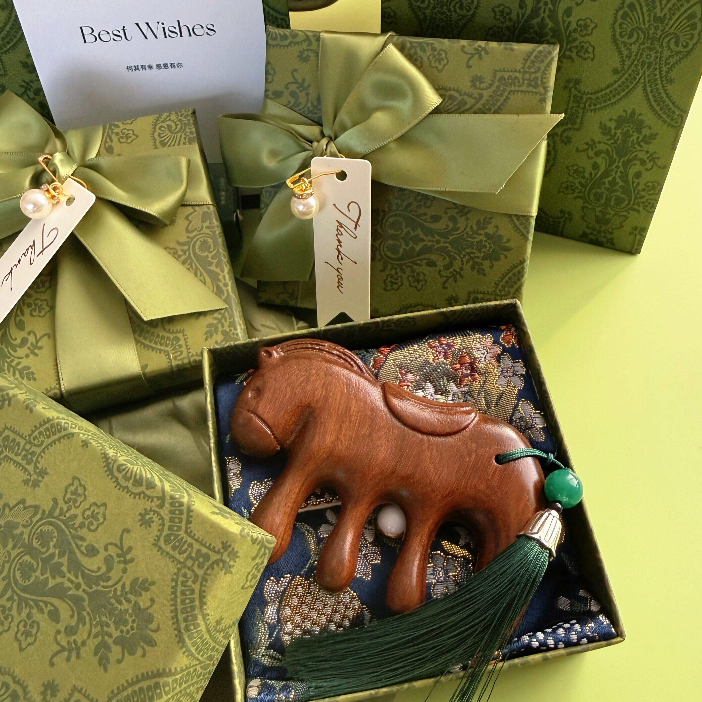📚 2026马年节日企业活动檀木经络梳伴手礼养生礼盒套装礼品礼物礼盒