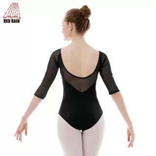 📚 红雨舞蹈服女芭蕾练功服连体服中袖艺考形体成人体操服空中瑜伽