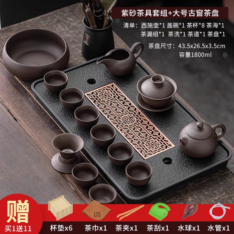 📚 紫砂整套功夫茶具套装茶盘茶壶盖碗茶杯轻奢高档家用喝茶办公泡茶