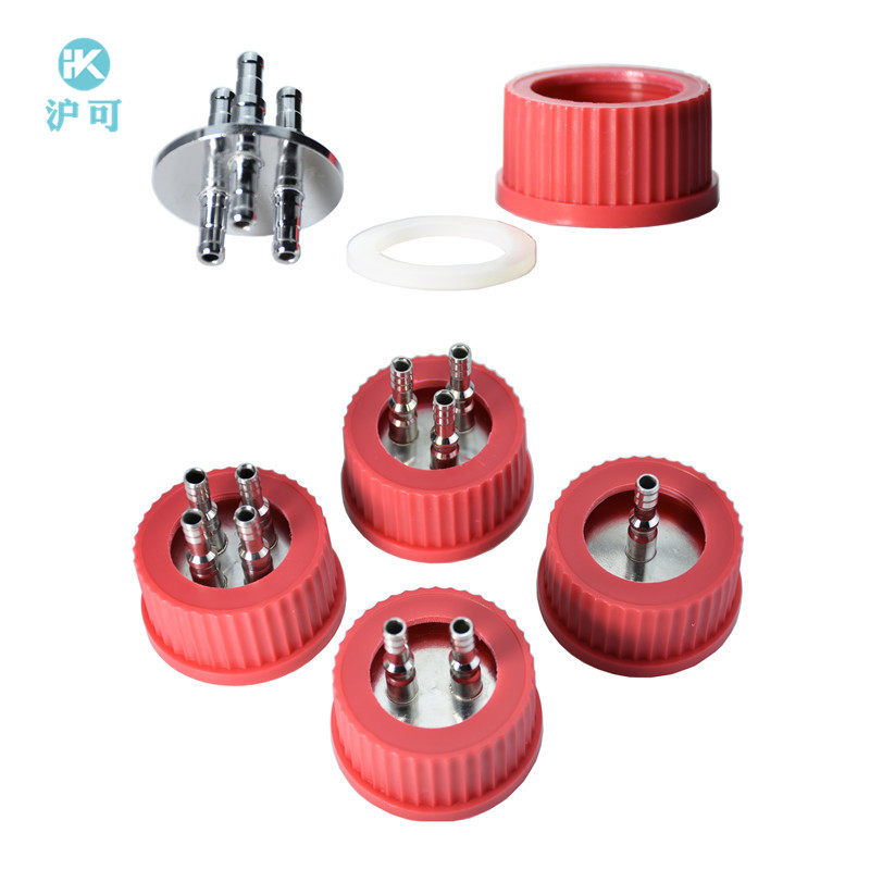 📚 高硼硅进取样流动相瓶单孔/双孔/三孔/四孔四氟蓝盖液相溶剂瓶补料盖废液瓶储液瓶1/2/3/4孔不锈钢厌氧瓶盖