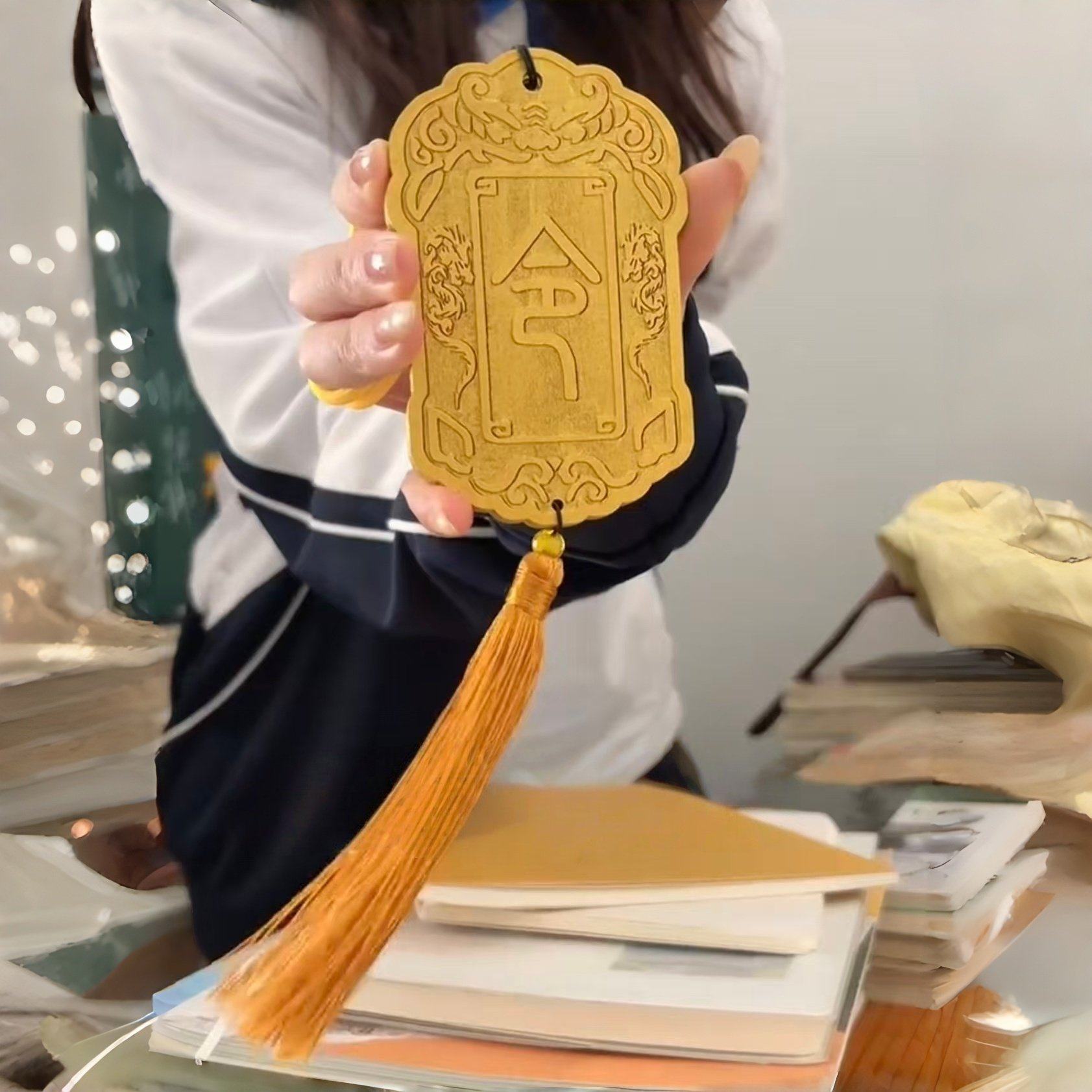 📚 木质皇帝令牌卡套创意校园卡饭卡防丢保护靠锦衣卫学生卡腰牌挂饰