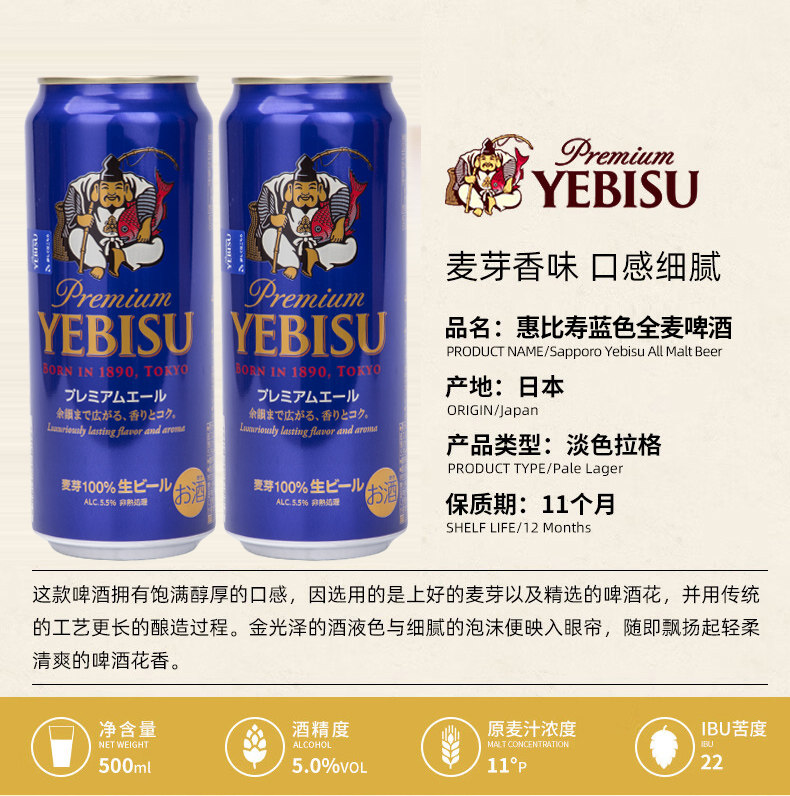 📚 日本原装进口三宝乐札幌惠比寿啤酒YEBISU500ml/350ml经典生啤